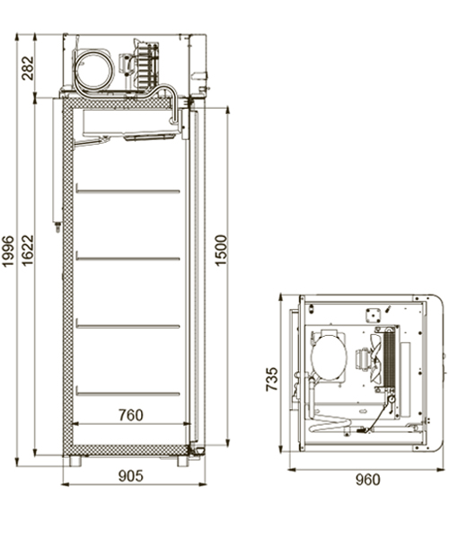 Каталог оборудования Холодильное оборудованиеШкафы холодильныеШкафы морозильные низкотемпературные до -18 °СШкаф морозильный Polair CB107-Sm Alu Шкаф морозильный Polair CB107-Sm Alu Код товара: 062-592 Поделиться: WhatsAppTelegram СравнитьДобавить в КПВ избранное 0 149 175 ₽ В корзину 0 шт Под заказСамовывоз сегодня бесплатно Взять в кредит Купить в лизинг Получить консультацию в WhatsApp Описание Характеристики Отзывы 0 Инструкции 4 Шкаф морозильный Polair CB107-Sm Alu предназначен для демонстрации и надежного хранения продуктов на предприятиях общественного питания и торговли. Цельнозаливной корпус выполнен из стали с полимерным покрытием и дополнен алюминиевыми профилями, что обеспечивает высокую механическую прочность и долговечность конструкции. Алюминиевые элементы дверей и верхней панели подчеркивают современный и премиальный дизайн. Шкаф стабильно работает при температуре окружающей среды до +40 °С и относительной влажности воздуха до 80%, сохраняя продукты в оптимальных условиях. Основные особенности: Электронный блок управления с жидкокристаллическим дисплеем Верхнее расположение агрегата, обеспечивающее удобный доступ к внутреннему объему Клапан Шредера для обслуживания системы охлаждения Компенсационный клапан с ПЭНом обогрева для предотвращения перепадов давления ПЭН обогрева трубки слива конденсата и ПЭН обогрева дверного проема для защиты от наледи Распашной тип дверей с возможностью изменения стороны открывания Интегрированные ручки, встроенные в алюминиевые профили дверей Эластичные уплотнители с магнитными вставками, обеспечивающие максимальную герметизацию Встроенная внутренняя подсветка для удобного обзора содержимого Микропереключатель, отключающий вентилятор и включающий подсветку при открытии двери Регулируемые по высоте ножки и педаль для открывания двери, повышающие эргономику использования Замок для безопасного хранения продукции 4 полки формата GN 2/1 (530×650 мм) с допустимой нагрузкой до 40 кг Толщина теплоизоляции корпуса — 61 мм Изображение товара, представленного на фото, может отличаться от его фактического вида. Показать все Габаритные размеры735×945×1996 ммДиапазон рабочей температурыдо -18 °CДлина735 ммГлубина450 ммВысота1996 ммОбъём700 лМатериал корпусаНержавеющая сталь Тип управленияМеханическое Расход электроэнергии в сутки12 кВтКоличество полок2 штКоличество дверей1 штЗамокЕсть Тип двериМеталлическая Способ открыванияРаздвижные (купе) Напряжение220 ВХладагентR290 Расположение агрегатаНижнее Габариты в упаковке850×988×2160 ммВес нетто128 кгВес брутто152 кгБрендPolair Оставить отзыв Еще никто не оставил отзыв на этот товар Схема POLAIR CB107-Sm.jpgИнструкция на POLAIR CB107-Sm.pdfСертификат соответствия.pdfДекларация о соответствии.pdf Похожие товары Перейти в каталог В наличии 122 949 ₽ Шкаф морозильный со стеклом TEFCOLD UF200SG нержавеющий В наличии 208 283 ₽ Шкаф морозильный с глухой дверью TEFCOLD BF850 нержавеющий под противни 600Х400/800ММ Под заказ 134 714 ₽ Шкаф морозильный Abat ШХн-0,5-01 нерж. Под заказ 134 024 ₽ Шкаф морозильный Polair CB107hd-G Под заказ 172 232 ₽ Шкаф морозильный со стеклом TEFCOLD NF2500G В наличии 181 593 ₽ Шкаф морозильный со стеклом TEFCOLD UF400SG нержавеющий Под заказ 134 034 ₽ Шкаф морозильный Abat ШХн-0,7 НовинкаВ наличии 177 120 ₽ Морозильный шкаф Briskly 7 Frost С этим товаром покупают Под заказ 144 096 ₽ Витрина холодильная универсальная Premier ЯНТАРЬ ВСУП1-0,22ТУ/Яв-УВ (внутр) По