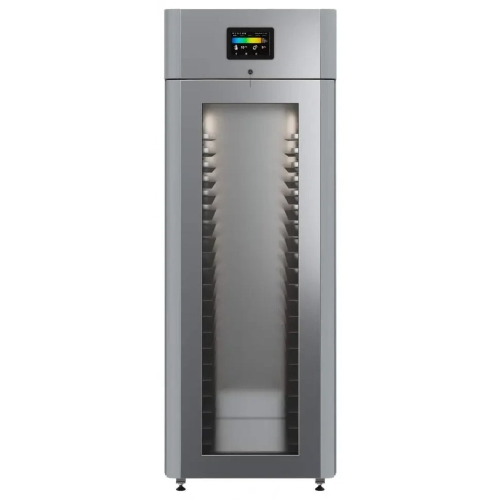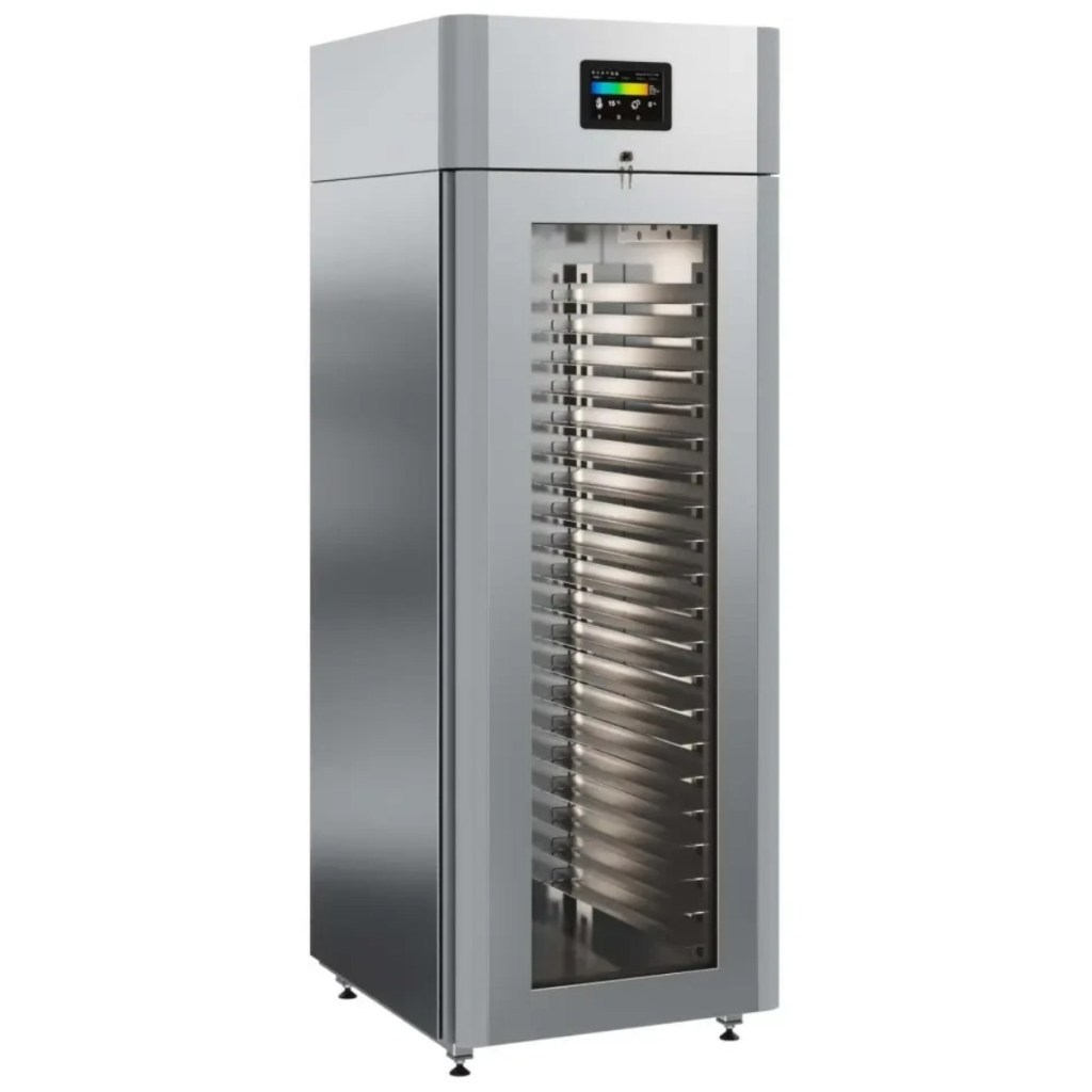 Каталог оборудования Холодильное оборудованиеШкафы холодильныеСпециализированные холодильные шкафыШкаф холодильный для хлебопекарных производств Polair CS107-Bakery Br со стеклом (Тип 1) Шкаф холодильный для хлебопекарных производств Polair CS107-Bakery Br со стеклом (Тип 1) Код товара: 062-622 Поделиться: WhatsAppTelegram СравнитьДобавить в КПВ избранное 0 414 545 ₽ В корзину 0 шт Под заказСамовывоз сегодня бесплатно Взять в кредит Купить в лизинг Получить консультацию в WhatsApp Описание Характеристики Отзывы 0 Инструкции 5 Шкаф холодильный для хлебопекарных производств Polair CS107-Bakery Br со стеклом (Тип 1) предназначен для создания оптимальных условий хранения и расстойки заготовок из теста на предприятиях общественного питания и торговли. Цельнозаливной корпус выполнен из нержавеющей стали, дверь — стеклопакет. Оборудование стабильно работает при температуре окружающей среды до +40 °C. В комплект входят 20 пар направляющих размером 400×600 мм. Особенности: Широкий функционал: охлаждение, замедление ферментации, хранение, регенерация, брожение и расстойка Динамическое охлаждение с мягким обдувом без заветривания и автоматическая оттайка с системой испарения конденсата Панель управления с 5" дисплеем: контроль температуры, влажности (регулируется от 60 до 95 %), скорости вентилятора и времени, а также возможность создания и сохранения программ Встроенный ультразвуковой увлажнитель (необходима система водоочистки и канализация) Эргономичная конструкция: верхнее расположение агрегата, распашная дверь со стеклопакетом, механизм самозакрывания, педаль для открытия, съёмные направляющие и легко заменяемый уплотнитель с магнитной вставкой Дополнительная защита: пластиковый бордюр по периметру камеры для предотвращения повреждений от тележек Простота ухода: штампованное углубление в дне корпуса для сбора загрязнений Экологичный хладагент R290 и энергоэффективность: потребляемая мощность — 0,55 кВт (охлаждение), 0,9 кВт (нагрев) Толщина стенки корпуса — 43 мм Polair CS107-Bakery Br со стеклом (Тип 1) — надёжный и многофункциональный шкаф, который обеспечивает полное управление процессами брожения и расстойки теста. Современная система охлаждения и увлажнения, продуманная конструкция и удобное управление делают его оптимальным решением для пекарен и кондитерских, стремящихся к стабильному качеству и высокой производительности.Изображение товара, представленного на фото, может отличаться от его фактического вида. Показать все Габаритные размеры697×1005×1960 ммДиапазон рабочей температурыот -10 до +40 °CДлина697 ммШирина1005 ммВысота1960 ммОбъём700 лКол-во дверей1 Тип двериСтеклянная Уровень влажностиот 60 до 95 %Направляющие под EN 40*6020 Расстояние между направляющими60 ммХолодильный агрегатВстроенный Тип оттайкиАвтоматическая Тип охлажденияДинамический ПодсветкаЕсть ХладагентR290 Вес нетто180 кгБрендPolairВсе специализированные холодильные шкафы Из нержавейки Оставить отзыв Еще никто не оставил отзыв на этот товар Схема POLAIR CS107 Bakery Br.jpgИнструкция на POLAIR CS107 Bakery Br.pdfБрошюра на хлебопекарное оборудование POLAIR.pdfДекларация о соответствии.pdfСертификат соответствия.pdf Похожие товары Перейти в каталог В наличии 397 290 ₽ Шкаф холодильный для хлебопекарных производств Polair CS107 Bakery Br (Тип 1) Под заказ 399 500 ₽ Шкаф холодильный для вызревания мяса Polair CS107 Meat со стеклом (Тип 1) Под заказ 402 050 ₽ Шкаф холодиль