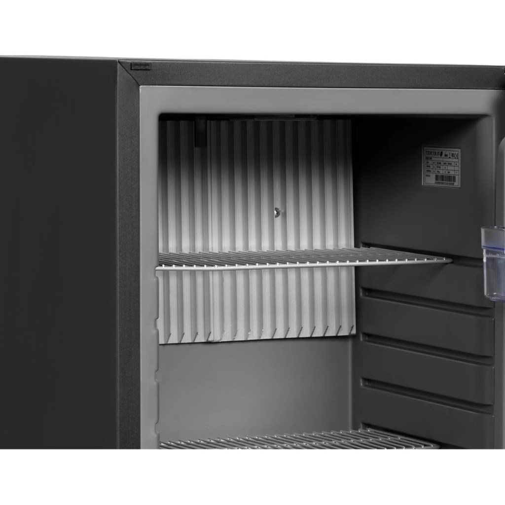 Каталог оборудования Холодильное оборудованиеШкафы холодильныеШкафы холодильные среднетемпературные от 0 до +5 °СМинибар TEFCOLD TM42 черный Минибар TEFCOLD TM42 черный Код товара: 010-449 Поделиться: WhatsAppTelegram СравнитьДобавить в КПВ избранное 0 23 832 ₽ В корзину 0 шт Под заказСамовывоз сегодня бесплатно Взять в кредит Купить в лизинг Получить консультацию в WhatsApp Описание Характеристики Отзывы 0 Инструкции 2 Минибар TEFCOLD TM42 предназначен для хранения алкогольных и безалкогольных напитков при оптимальной температуре в гостиницах, ресторанах, барах и домашних условиях. Модель отличается бесшумной работой, компактными размерами и стильным дизайном. Особенности модели: Абсорбционная система охлаждения — бесшумная и надёжная в эксплуатации. Электронный контроллер с цифровой индикацией температуры. Автоматическая оттайка — не требует обслуживания. Светодиодное внутреннее освещение с активацией при открывании двери. Перенавешиваемая дверь с замком — удобство и безопасность использования. Регулируемые опоры для устойчивости на неровных поверхностях. Энергоэффективный и экологичный хладагент NH₃. Класс энергоэффективности: G. Климатический класс: 3. Эргономичный дизайн — корпус чёрного цвета, внутренняя отделка из прочного ABS-пластика (RAL9005). Диапазон рабочих температур: от –1 до +15 °C. Общий объём — 36 л, полезный — 35 л. Низкое энергопотребление — 0,53 кВт·ч/сутки (193 кВт·ч/год). Максимальная температура окружающей среды — 25 °C. Уровень шума — минимальный (абсорбционная система). Масса хладагента — 0,072 кг. TEFCOLD TM42 — компактное и бесшумное решение для хранения напитков, сочетающее удобство, энергоэффективность и современный дизайн, идеально подходящее для гостиничного и домашнего использования.Изображение товара, представленного на фото, может отличаться от его фактического вида. Показать все Габаритные размеры402×463×560 ммДиапазон рабочей температурыот 0 до +10 °CДлина463 ммГлубина463 ммВысота560 ммОбъём34 лНапряжение220 ВПотребляемая мощность0,05 кВтТип оттайкиАвтоматический Тип охлажденияДинамическое Тип управленияМеханическое Материал корпусаНержавеющая сталь Тип двериМеталлическая Способ открыванияРаспашные Количество полок2 штКоличество дверей1 штЗамокЕсть ПодсветкаЕсть Климатический класс5 Холодильный агрегатВстроенный Расположение агрегатаНижнее Габариты в упаковке450×495×600 ммВес нетто14 кгВес брутто19 кгБрендTefcoldВсе барные холодильные шкафыВсе мини-холодильникиВсе холодильные шкафы для напитковВсе шкафы холодильные среднетемпературные от 0 до +5 °С Из нержавейки Оставить отзыв Еще никто не оставил отзыв на этот товар Инструкция на TEFCOLD TM42.pdfСпецификация на TEFCOLD TM42.pdf Похожие товары Перейти в каталог Под заказ 122 325 ₽ Шкаф холодильный Polair CM110-Sm Alu В наличии 132 980 ₽ Шкаф холодильный настенный ФИНИСТ CS-14 В наличии 117 045 ₽ Шкаф холодильный Polair СМ 107-G Под заказ 84 606 ₽ Шкаф холодильный Ангара 700 БК В наличии 114 554 ₽ Шкаф холодильный TEFCOLD UR400G В наличии 14 544 ₽ Шкаф холодильный HURAKAN HKN-BCH48D Под заказ 190 494 ₽ Шкаф холодильный среднетемпературный Arkto D1.4-G Под заказ 157 100 ₽ Шкаф холодильный МХМ Капри 1,12СК ступенчатый С этим товаром покупают Под заказ 26 613 ₽ Шкаф холодильный Pozis Свияга-513-6 В наличии 55 864 ₽ Шкаф холодильный универсальный МХМ ШХСн 0,06 С Ранее просмотрено В наличии 94 892 ₽ Стол холодильный для салатов TEFCOLD SA910