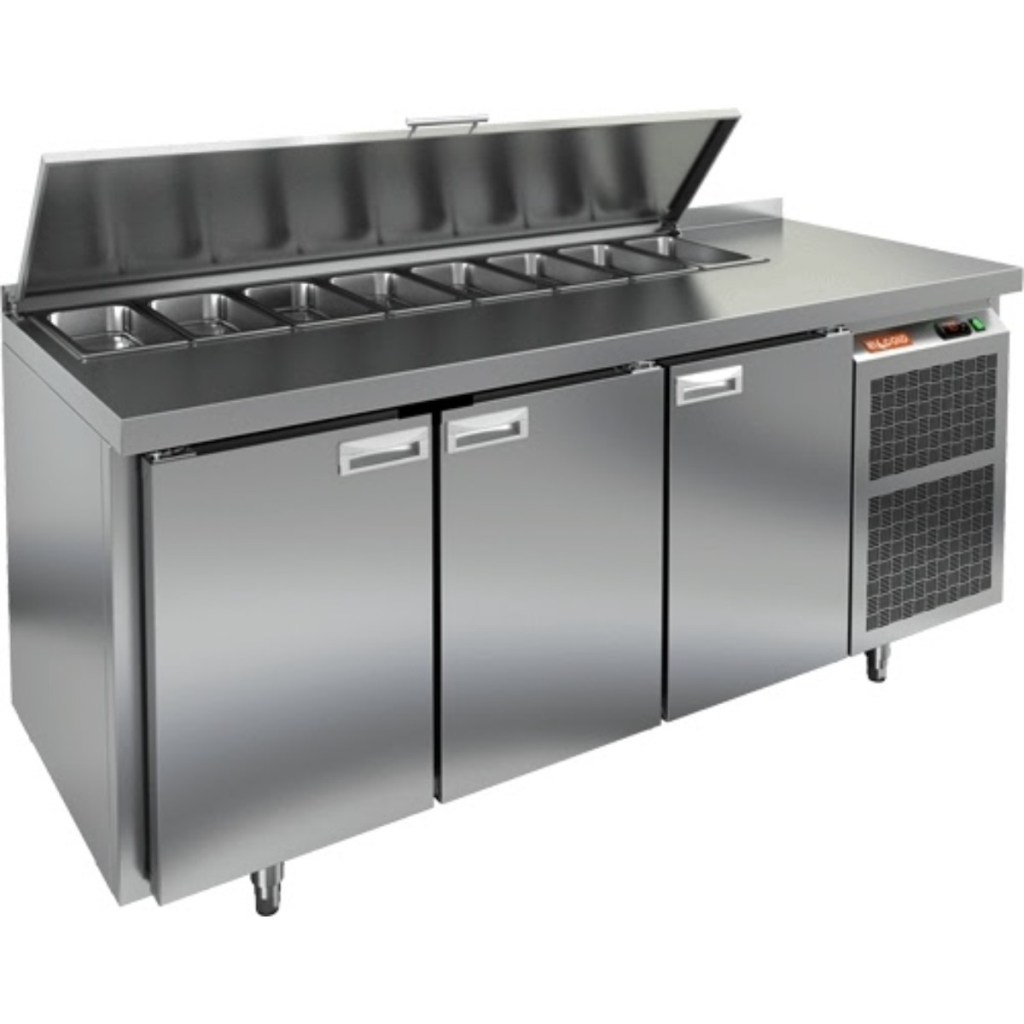 Модель сочетает в себе прочную рабочую поверхность и охлаждаемый внутренний объем, что упрощает процесс приготовления: все необходимые ингредиенты всегда под рукой. Корпус и столешница изготовлены из нержавеющей стали, устойчивой к воздействию влаги, механическим повреждениям и легко поддающейся очистке.