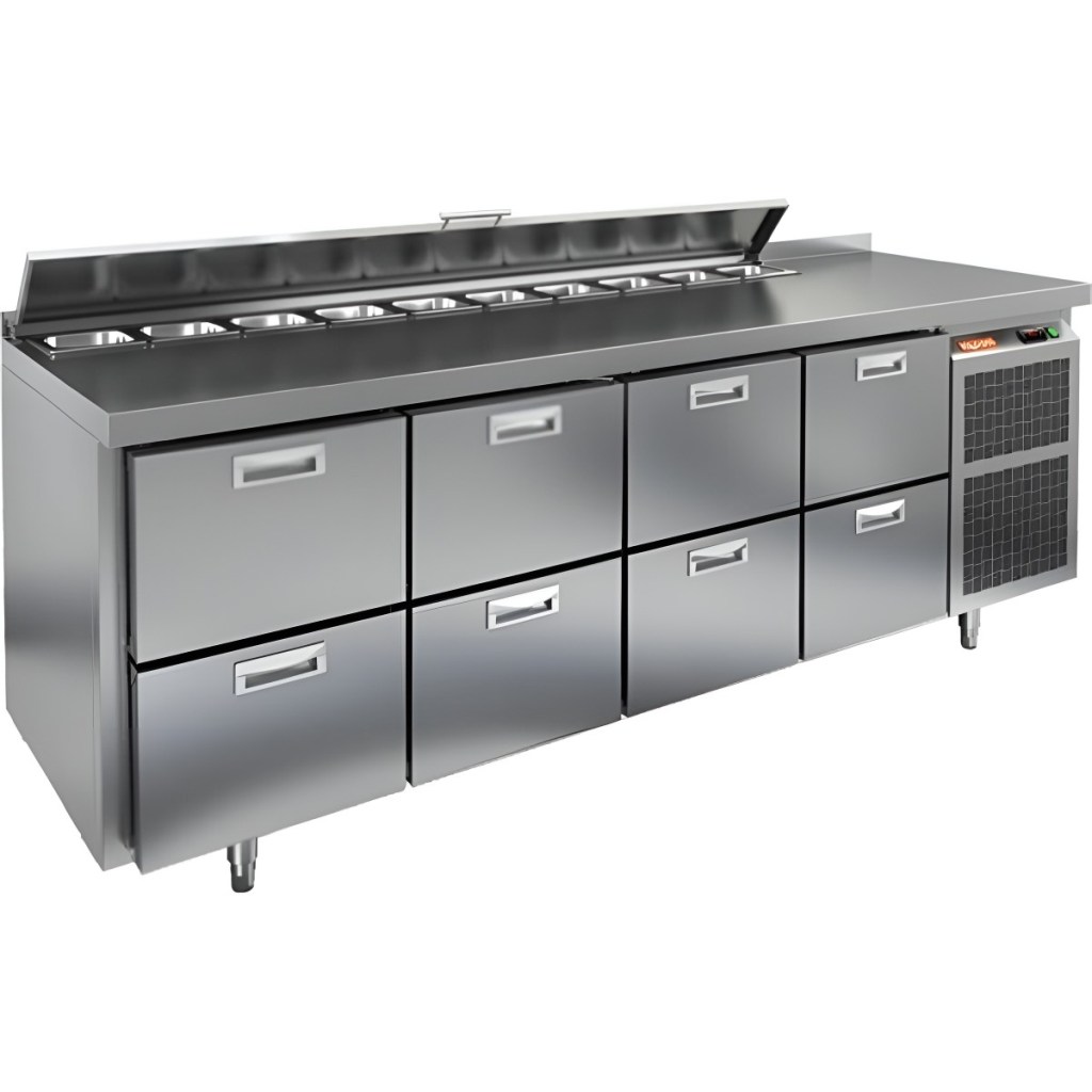 Каталог оборудования Холодильное оборудованиеСтолы охлаждаемыеСтолы холодильные для салатовСтол холодильный для салатов HiCold SL2-2222GN (1/6) с крышкой Стол холодильный для салатов HiCold SL2-2222GN (1/6) с крышкой Код товара: 064-815 Поделиться: WhatsAppTelegram СравнитьДобавить в КПВ избранное 0 320 122 ₽ В корзину 0 шт Под заказСамовывоз сегодня бесплатно Взять в кредит Купить в лизинг Получить консультацию в WhatsApp Описание Характеристики Отзывы 0 Инструкции 2 Стол холодильный для салатов HiCold SL2-2222GN (1/6) с крышкой предназначен для использования на предприятиях общественного питания и торговли. Он подходит для хранения, обработки и кратковременного охлаждения ингредиентов, применяемых при приготовлении пиццы, салатов, закусок и других блюд. Модель совмещает охлаждаемый объем и рабочую поверхность, что значительно повышает удобство и скорость работы персонала. Корпус и столешница выполнены из прочной и гигиеничной нержавеющей стали, устойчивой к влаге, загрязнениям и механическим повреждениям. Металлическая крышка защищает продукты от загрязнений и сохраняет их свежесть. Особенности модели: Электронная панель управления — точная настройка температуры. Салат-бар на 11 гастроемкостей — быстрый доступ к ингредиентам. 8 внутренних ящиков — удобное размещение и легкая замена продуктов. Автоматические доводчики дверей — комфортная эксплуатация. Съёмные магнитные уплотнители — герметичность и стабильная температура. Открытая агрегатная часть — лёгкое обслуживание. Регулируемые ножки — установка на любой поверхности. Глубина гастроемкостей до 150 мм, столешница и теплоизоляция — 50 мм. Высота борта — 50 мм — защита рабочей поверхности. HiCold SL2-2222GN (1/6) с крышкой — универсальное и функциональное решение для профессиональной кухни, позволяющее оптимизировать рабочие процессы и повысить производительность за счет удобного хранения и быстрого доступа к ингредиентам.Изображение товара, представленного на фото, может отличаться от его фактического вида. Показать все Габаритные размеры2280×700×850 ммДиапазон рабочей температурыот +2 до +10 °CРасположение агрегатаБоковое Материал столешницыНержавеющая Тип столаС ящиками Объём660 лТип гастроемкостейGN 1/6 Количество ящиков8 штНапряжение220 ВМощность0,48 кВтТип охлажденияДинамическое Тип оттайкиАвтоматическая СтолешницаС бортом Габариты в упаковке2420×850×1000 ммВес нетто155 кгВес брутто210 кгБрендHicold Оставить отзыв Еще никто не оставил отзыв на этот товар Паспорт на HICOLD SL2-2222GN.pdfДекларация о соответствии.pdf Ранее просмотрено Под заказ 255 862 ₽ Стол холодильный для салатов HiCold SL2-222GN (1/6) без крышки Под заказ 238 713 ₽ Камера холодильная Polair КХН-16,71 (2260×4060×2200) 80 мм В наличии 140 122 ₽ Стол холодильный для салатов HiCold SL1-11GN (1/3) без крышки Под заказ 166 222 ₽ Стол холодильный для салатов HiCold SL1-11GN (1/3) М с крышкой Под заказ 182 242 ₽ Стол холодильный для салатов HiCold SLE3-111GN полипропилен, с крышкой Под заказ 152 452 ₽ Стол холодильный для салатов HiCold SLE2-111GN (1/6) О З с крышкой Под заказ 201 682 ₽ Стол холодильный для салатов HiCold SL2-22GN (1/6) О без крышки