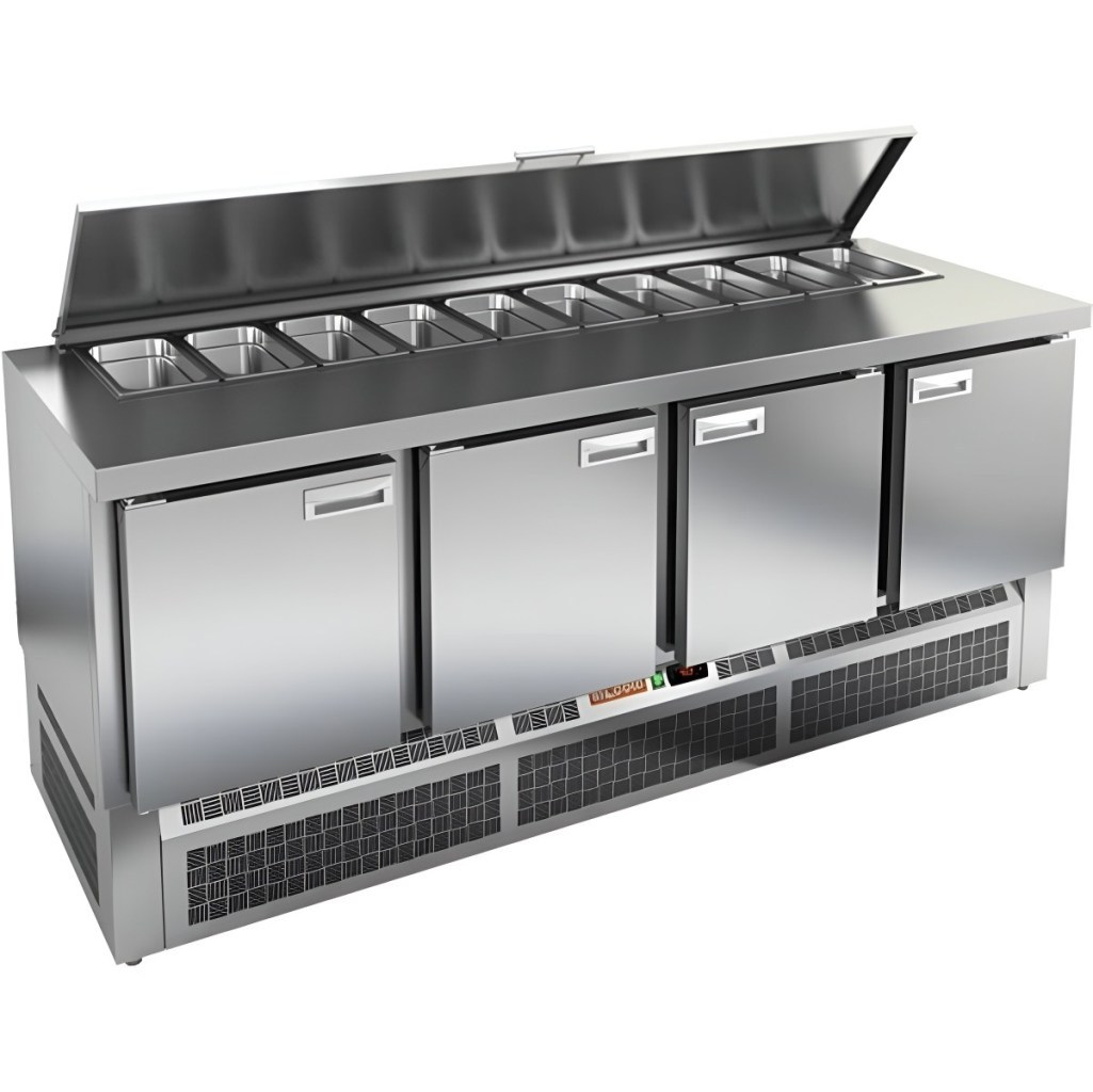 Каталог оборудования Холодильное оборудованиеСтолы охлаждаемыеСтолы холодильные для салатовСтол холодильный для салатов HiCold SLE1-11111GN (1/3) О с крышкой Стол холодильный для салатов HiCold SLE1-11111GN (1/3) О с крышкой Код товара: 064-545 Поделиться: WhatsAppTelegram СравнитьДобавить в КПВ избранное 0 172 162 ₽ В корзину 0 шт Под заказСамовывоз сегодня бесплатно Взять в кредит Купить в лизинг Получить консультацию в WhatsApp Описание Характеристики Отзывы 0 Инструкции 2 Стол холодильный для салатов HiCold SLE1-1111GN (1/3) О с крышкой предназначен для предприятий общественного питания и торговли. Он позволяет хранить и обрабатывать ингредиенты для пиццы, салатов и других блюд, а также охлаждать и кратковременно хранить скоропортящиеся продукты и напитки. Модель совмещает рабочую поверхность и охлаждаемый объем, что обеспечивает удобство работы повара: все необходимые компоненты всегда под рукой. Корпус и столешница выполнены из нержавеющей стали, что гарантирует долговечность и простоту ухода. Особенности: Динамическая система охлаждения — равномерное распределение температуры по всему объему. Автоматическая оттайка — упрощает уход за оборудованием. Электронная панель управления — удобная настройка температуры и режимов работы. 4 вместительные внутренние полки формата GN 1/1 — оптимальное хранение ингредиентов. Автоматические доводчики дверей с фиксатором открытого положения — комфорт и безопасность работы. Легкозаменяемые магнитные уплотнители — простота обслуживания. Открытая агрегатная часть — облегчает доступ для обслуживания. Регулируемые по высоте ножки — адаптация к рабочей поверхности. Размер полки: 530×325 мм (GN 1/1) Максимальная глубина гастроемкостей: 100 мм Столешница без борта и с крышкой: толщина столешницы и теплоизоляции — 50 мм, высота борта — 50 мм HiCold SLE1-1111GN (1/3) О с крышкой — надежный и удобный стол для профессиональной кухни. Он обеспечивает эффективное охлаждение и хранение ингредиентов, а комбинированная рабочая поверхность с холодильным объемом упрощает работу повара, делая процесс приготовления быстрее и удобнее.Изображение товара, представленного на фото, может отличаться от его фактического вида. Показать все Габаритные размеры1970×700×800 ммДиапазон рабочей температурыот +2 до +10 °CРасположение агрегатаНижнее Материал столешницыНержавеющая Тип столаС дверьми Тип двериГлухая Объём505 лКоличество дверей4 штТип гастроемкостейGN 1/3 Размер полки530×325 ммНапряжение220 ВМощность0,46 кВтТип охлажденияДинамический Тип оттайкиАвтоматическая СтолешницаС бортом Вес нетто135 кгВес брутто195 кгБрендHicold Оставить отзыв Еще никто не оставил отзыв на этот товар Паспорт на HICOLD SLE1-1111GN (1/3) О.pdfДекларация о соответствии.pdf Ранее просмотрено Под заказ 320 122 ₽ Стол холодильный для салатов HiCold SL2-2222GN (1/6) с крышкой Под заказ 255 862 ₽ Стол холодильный для салатов HiCold SL2-222GN (1/6) без крышки Под заказ 238 713 ₽ Камера холодильная Polair КХН-16,71 (2260×4060×2200) 80 мм В наличии 140 122 ₽ Стол холодильный для салатов HiCold SL1-11GN (1/3) без крышки Под заказ 166 222 ₽ Стол холодильный для салатов HiCold SL1-11GN (1/3) М с крышкой Под заказ 182 242 ₽ Стол холодильный для салатов HiCold SLE3-111GN полипропилен, с крышкой Под заказ 152 452 ₽ Стол холодильный для салатов HiCold SLE2-111GN (1/6) О З с крышкой