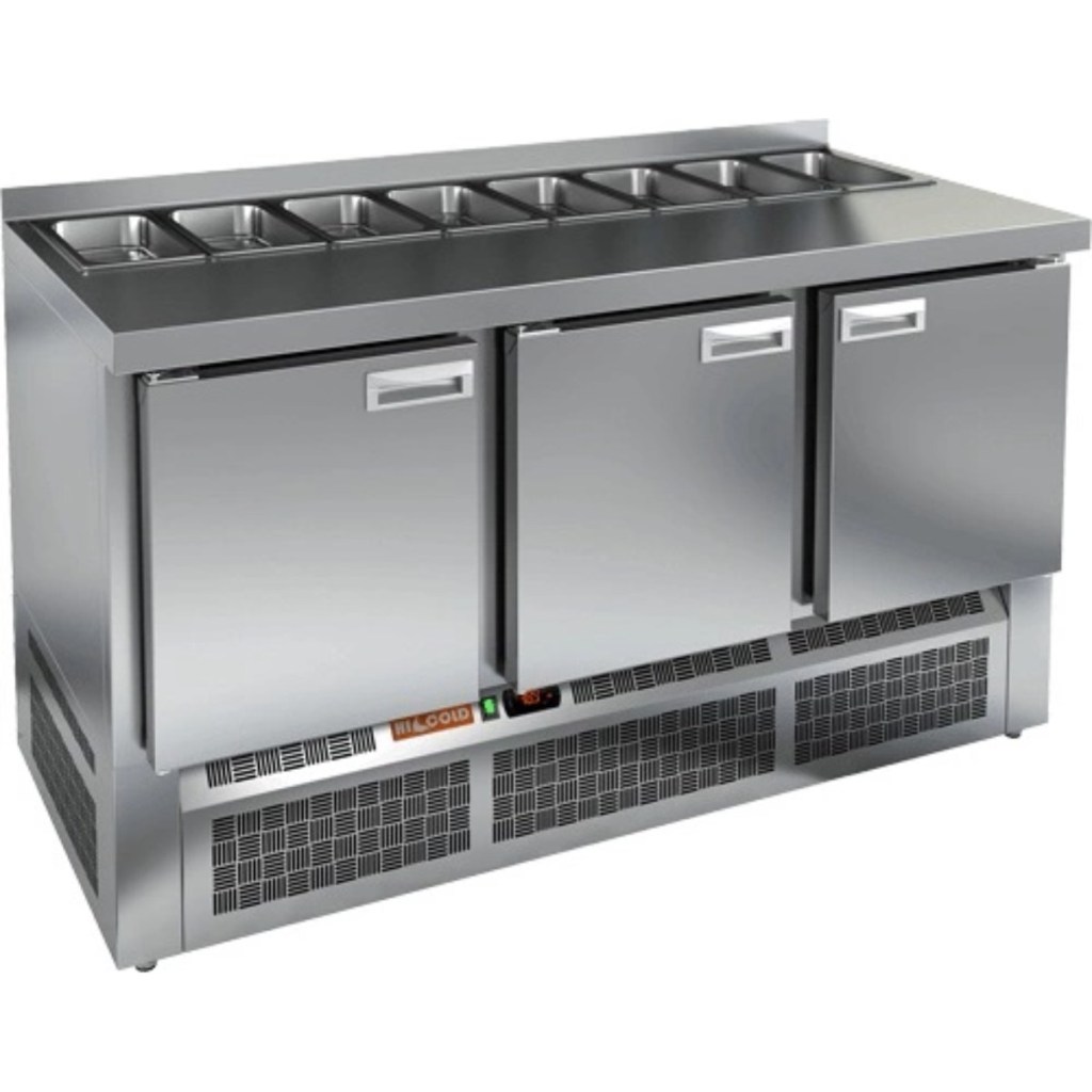 Стол холодильный для салатов HiCold SLE1-111SN (1/3) без крышки предназначен для профессионального использования в заведениях общественного питания и торговли. Он обеспечивает не только охлаждение и кратковременное хранение продуктов, но и удобную рабочую поверхность для подготовки ингредиентов, что особенно актуально при приготовлении салатов, пиццы и холодных блюд.