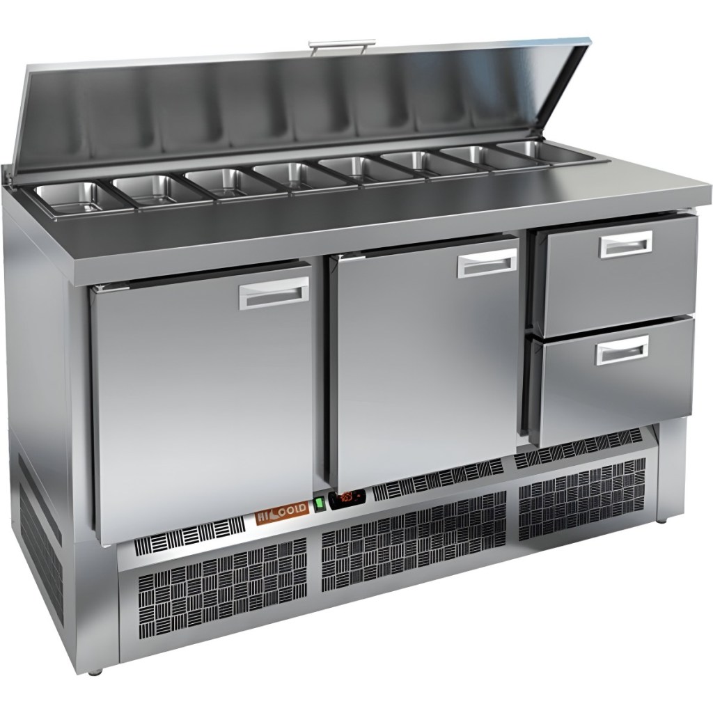 Каталог оборудования Холодильное оборудованиеСтолы охлаждаемыеСтолы холодильные для салатовСтол холодильный для салатов HiCold SLE1-112GN (1/3) О с крышкой Стол холодильный для салатов HiCold SLE1-112GN (1/3) О с крышкой Код товара: 064-903 Поделиться: WhatsAppTelegram СравнитьДобавить в КПВ избранное 0 178 192 ₽ В корзину 0 шт Под заказСамовывоз сегодня бесплатно Взять в кредит Купить в лизинг Получить консультацию в WhatsApp Описание Характеристики Отзывы 0 Инструкции 2 Стол холодильный для салатов HiCold SLE1-112GN (1/3) О с крышкой предназначен для профессионального использования в заведениях общественного питания и торговли. Он обеспечивает не только охлаждение и кратковременное хранение продуктов, но и удобную рабочую поверхность для подготовки ингредиентов, что особенно актуально при приготовлении салатов, пиццы и холодных блюд. Корпус и столешница изготовлены из высококачественной нержавеющей стали, что гарантирует долговечность, легкость в уходе и соответствие санитарным требованиям. Металлическая крышка защищает продукты от загрязнений и сохраняет их свежесть. Основные особенности: Электронная панель управления — для точной настройки температуры и простоты эксплуатации. 2 вместительные полки GN 1/1 — обеспечивают организованное хранение продуктов. 2 глухие дверцы с автоматическими доводчиками и фиксацией — повышают удобство использования, особенно при загрузке и выгрузке продуктов. Салат-бар на 8 гастроемкостей — удобно размещает большое количество ингредиентов под рукой. Автоматические доводчики дверей — с фиксацией в открытом положении для комфортной загрузки. Магнитные уплотнители — легко заменяются и обеспечивают надежное уплотнение. Открытая агрегатная часть — облегчает доступ для обслуживания и ремонта. Регулируемые по высоте ножки — позволяют точно выставить уровень на неровной поверхности. Максимальная глубина гастроемкостей — 100 мм — подходит для хранения различных типов продуктов. Столешница толщиной 50 мм без борта — полноценная рабочая зона. Теплоизоляция толщиной 50 мм — сохраняет стабильный температурный режим и снижает энергозатраты. HiCold SLE1-112GN (1/3) О с крышкой — это практичное решение для профессиональных кухонь, где важно сочетание удобства, вместительности и надежности. Модель позволяет организовать рабочее пространство эффективно и с комфортом для персонала.Изображение товара, представленного на фото, может отличаться от его фактического вида. Показать все Габаритные размеры1485×700×850 ммДиапазон рабочей температурыот +2 до +10 °CРасположение агрегатаНижнее Материал столешницыНержавеющая Тип столаС дверьми и ящиками Тип двериГлухая Объём320 лКоличество дверей2 штТип гастроемкостейGN 1/3 Количество ящиков2 штРазмер полки530х325 ммНапряжение220 ВМощность0,22 кВтТип охлажденияДинамическое Тип оттайкиАвтоматическая СтолешницаБез борта Вес нетто94 кгВес брутто152 кгБрендHicold Оставить отзыв Еще никто не оставил отзыв на этот товар Паспорт на HICOLD SLE1-112GN.pdfДекларация о соответствии.pdf Ранее просмотрено Под заказ 198 892 ₽ Стол холодильный для салатов HiCold SL1-112GN (1/3) с крышкой