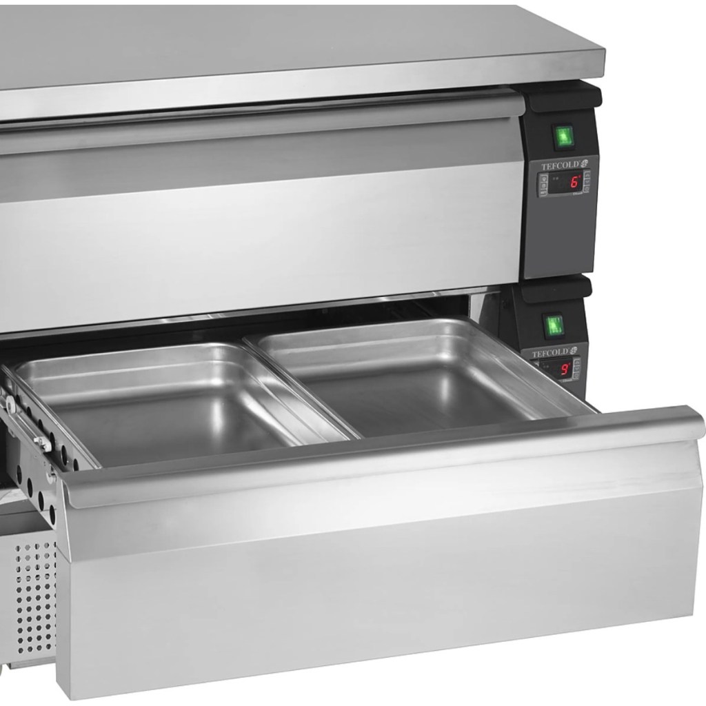 Каталог оборудования Холодильное оборудованиеСтолы охлаждаемыеСтолы холодильные комбинированныеСтол холодильно-морозильный TEFCOLD UNI-DRAWER UD1-2 Стол холодильно-морозильный TEFCOLD UNI-DRAWER UD1-2 Код товара: 010-373 Поделиться: WhatsAppTelegram СравнитьДобавить в КПВ избранное 0 169 675 ₽ В корзину 0 шт В наличииСамовывоз сегодня бесплатно Взять в кредит Купить в лизинг Получить консультацию в WhatsApp Описание Характеристики Отзывы 0 Инструкции 2 Стол холодильно-морозильный TEFCOLD UNI-DRAWER UD1-2 — профессиональное оборудование для обработки ингредиентов и хранения охлажденных и замороженных продуктов на предприятиях общественного питания и торговли. Корпус и внутренняя отделка выполнены из нержавеющей стали SS304, что обеспечивает долговечность и удобство в уходе. Модель оснащена расположенным снизу агрегатным отсеком, столешницей, гастрономированным выдвижным ящиком и кнопочной панелью управления с цифровым дисплеем. Особенности модели: Динамическое охлаждение с равномерным распределением воздуха Электронный контроллер Dixell с цифровой индикацией температуры Автоматическая оттайка Легкое переключение между холодильным и морозильным режимами Символьная индикация работы компрессора и функция самодиагностики 4 поворотные колеса, включая 2 со стопором, для удобства перемещения Экологичный энергоэффективный хладагент R290 Прочные материалы и качественные комплектующие для длительного срока службы Энергоэффективность класса D, климатический класс 5 Формат гастроемкостей GN2/1 Эргономичный и стильный дизайн Температурный режим: от -21 до +4 °C Максимальная температура окружающей среды: 40 °C, влажность до 40% Вместимость гастроемкостей: 2 Общий объем: 78 л, полезный объем: 51 л Энергопотребление: 4,85 кВт/сутки (годовое — 1770 кВт⋅ч) Уровень шума: 54 дБ TEFCOLD UD1-2 — универсальный и надёжный стол для охлаждения и заморозки продуктов с удобным управлением, мобильностью и энергоэффективностью для профессиональных кухонь.Изображение товара, представленного на фото, может отличаться от его фактического вида. Показать все Габаритные размеры905×700×600 ммРасположение агрегатаНижнее Материал столешницыНержавеющая Тип столаС ящиками Общий объем78 лПолезный объем51 лКоличество ящиков1 штТип гастроемкостейGN2/1 Климатический класс5 Уровень шума42 дБНапряжение220 ВРасход электроэнергии в сутки2,21 кВт/сутТип охлажденияДинамический Тип оттайкиАвтоматическая ХладагентR290 Габариты в упаковке1000×800×700 ммВес нетто50 кгВес брутто72 кгБрендTefcold Оставить отзыв Еще никто не оставил отзыв на этот товар Инструкция на TEFCOLD UNI-DRAWER UD1-2.pdfСпецификация на TEFCOLD UNI-DRAWER UD1-2.pdf Похожие товары Перейти в каталог Под заказ 79 461 ₽ Стол холодильный среднетемпературный HiCold SN 1/TN W Под заказ 112 370 ₽ Стол холодильный среднетемпературный Abat СХС-70 с бортом (ящики 1/2) Под заказ 104 947 ₽ Стол холодильный среднетемпературный Abat СХС-70 с бортом (дверь) С этим товаром покупают В наличии 397 290 ₽ Шкаф холодильный для хлебопекарных производств Polair CS107 Bakery Br (Тип 1) В наличии 162 910 ₽ Плита индукционная Аbat КИП-47Н-5,0 Ранее просмотрено Под заказ 160 011 ₽ Стол с охлаждаемой поверхностью HiCold GN-SO 111/TN