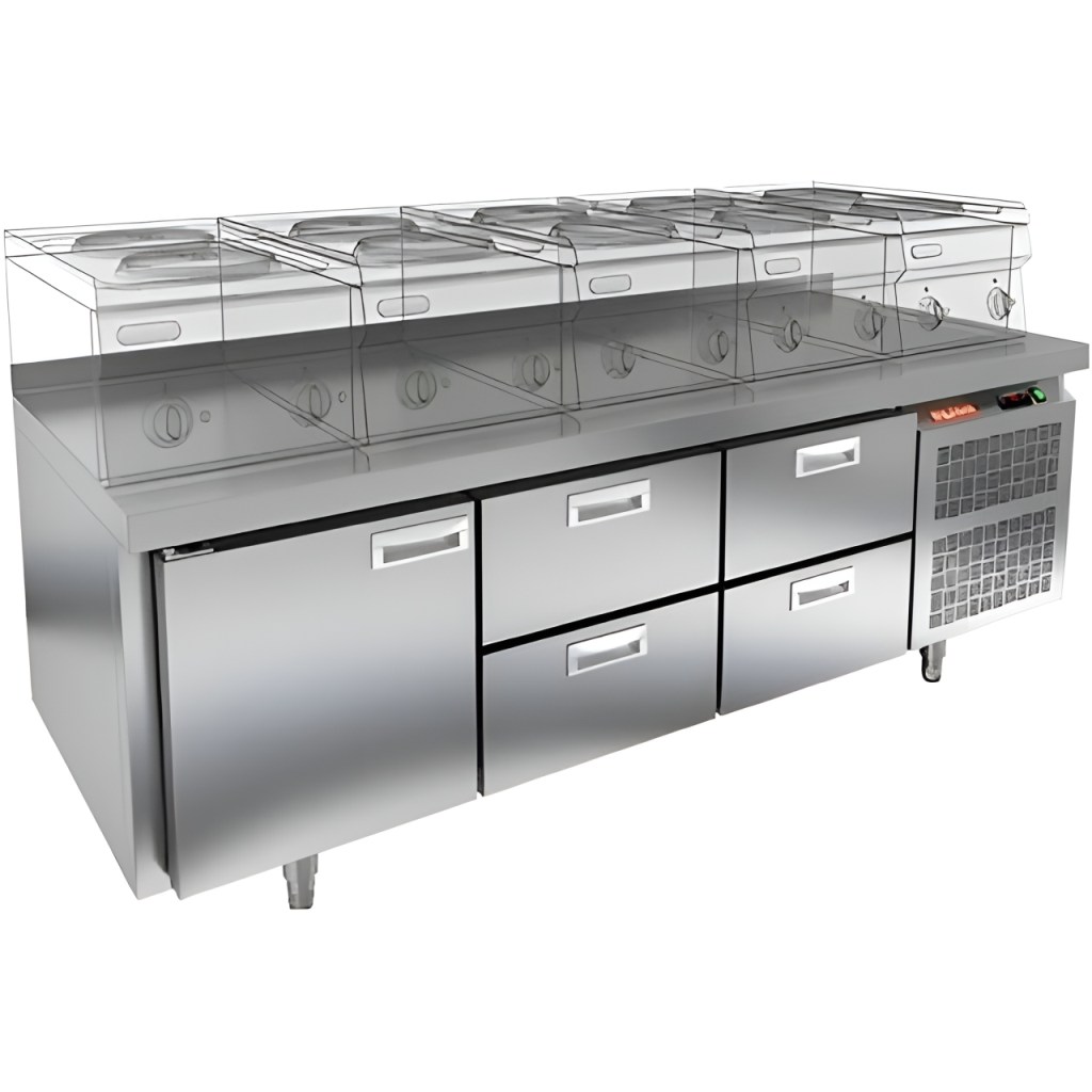 Каталог оборудования Холодильное оборудованиеСтолы охлаждаемыеСтолы холодильные под тепловое оборудованиеСтол морозильный HiCold GN 222/BT LT О под тепловое оборудование Стол морозильный HiCold GN 222/BT LT О под тепловое оборудование Код товара: 065-140 Поделиться: WhatsAppTelegram СравнитьДобавить в КПВ избранное 0 260 812 ₽ В корзину 0 шт Под заказСамовывоз сегодня бесплатно Взять в кредит Купить в лизинг Получить консультацию в WhatsApp Описание Характеристики Отзывы 0 Инструкции 2 Стол морозильный HiCold GN 222/BT LT О сочетает в себе функциональную рабочую поверхность и вместительную морозильную камеру для хранения продуктов и полуфабрикатов. Он идеально подходит для предприятий общественного питания, обеспечивая удобство и комфорт при приготовлении блюд. Рабочая поверхность рассчитана на установку теплового оборудования — встроенный под столешницей ДСП-лист придает конструкции дополнительную жесткость и надежно защищает морозильную камеру от перегрева. Такое решение позволяет эффективно использовать пространство кухни и повышает производительность труда. Внимание! На фото представлена аналогичная модель с бортом. В комплекте столешница поставляется без борта. Особенности: Совместимость с гастроемкостями стандарта GN — полки, направляющие и стойки выполнены по стандарту GN, что обеспечивает полную интеграцию с другим профессиональным оборудованием. Цельнозаливной корпус из нержавеющей стали с теплоизоляцией толщиной 50 мм обеспечивает высокую герметичность, жесткость и энергоэффективность. Столешница без борта для удобной работы с крупными и длинными заготовками. Электронный блок управления надежен в эксплуатации и поддерживает несколько режимов оттаивания. Мощный вентилятор и система принудительной вентиляции обеспечивают равномерное охлаждение по всему объему камеры. Интеллектуальная система размораживания и термическое выпаривание конденсата снижают затраты на обслуживание. Экономичный компрессор нового поколения снижает энергопотребление. Облегченный доступ к агрегату упрощает сервисное обслуживание. Петли-доводчики и электронагреватель (ПЭН) по периметру двери предотвращают примерзание и гарантируют плотное закрытие. Регулируемые по высоте ножки для устойчивости на разных поверхностях. Максимальная нагрузка на полку — 50 кг, высота борта — 50 мм. Работает при температуре окружающей среды от 12 до 32 °C. HiCold GN 222/BT LT О — это современное, энергоэффективное решение, которое сочетает надежное замораживание и удобное хранение продуктов с возможностью использования рабочей поверхности. Благодаря наличию двух выдвижных ящиков, стол обеспечивает дополнительный комфорт и функциональность при работе на профессиональной кухне.Изображение товара, представленного на фото, может отличаться от его фактического вида. Показать все Габаритные размеры1835×700×675 ммДиапазон рабочей температурыот -18 до -10 °CМатериал столешницыНержавеющая Расположение агрегатаБоковое Объём375 лТип столаС ящиками Количество ящиков6 штНапряжение220 ВМощность0,6 кВтТип охлажденияДинамический Тип оттайкиАвтоматическая СтолешницаБез борта Габариты в упаковке2000×850×825 ммВес нетто110 кгВес брутто130 кгБрендHicold Оставить отзыв Еще никто не оставил отзыв на этот товар Паспорт на HICOLD GN 222/BT LT О.pdfДекларация о соответствии.pdf Похожие товары Перейти в каталог Под заказ 