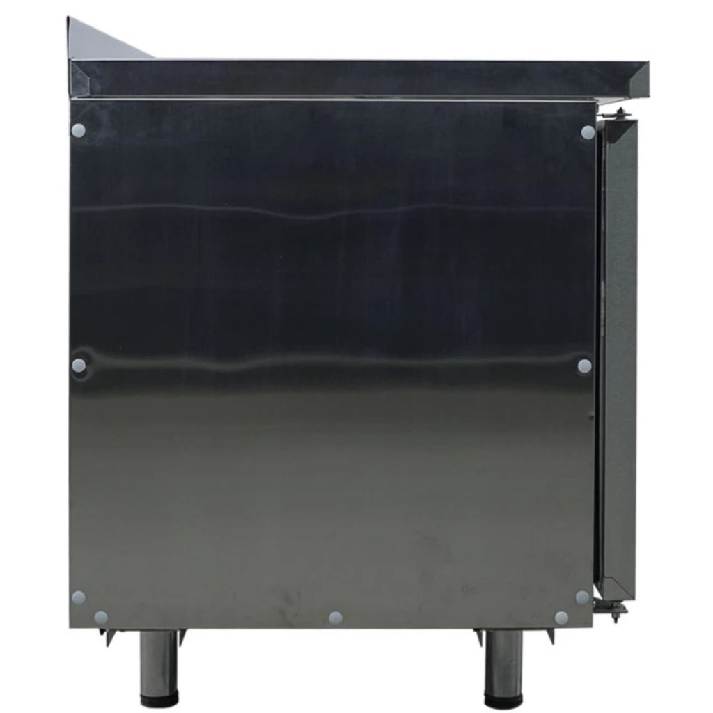 Диапазон температур: -2…+10 °C / +2…+10 °C, что позволяет использовать стол как для охлаждённых, так и для быстро портящихся продуктов.