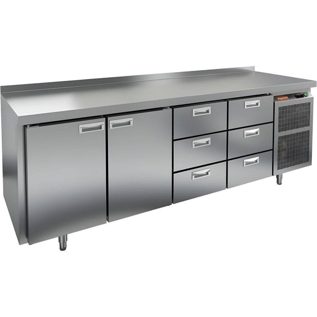 Каталог оборудования Холодильное оборудованиеСтолы охлаждаемыеСтолы холодильные среднетемпературныеСтол холодильный среднетемпературный HiCold SN 1133/TN Стол холодильный среднетемпературный HiCold SN 1133/TN Код товара: 001-335 Поделиться: WhatsAppTelegram СравнитьДобавить в КПВ избранное 0 258 742 ₽ В корзину 0 шт Под заказСамовывоз сегодня бесплатно Взять в кредит Купить в лизинг Получить консультацию в WhatsApp Описание Характеристики Отзывы 0 Инструкции 1 Стол холодильный среднетемпературный HiCold SN 1133/TN сочетает в себе рабочую поверхность для раскатывания теста и обработки ингредиентов, а также охлаждающую камеру для кратковременного хранения скоропортящихся продуктов и напитков. Оборудование предназначено для предприятий общественного питания и обеспечивает комфортную и эффективную работу на кухне. Особенности: Цельнозаливной корпус из нержавеющей стали с 50 мм теплоизоляцией, обеспечивающий высокую герметичность и жесткость конструкции. Надежный электронный блок управления с несколькими режимами оттаивания для удобства эксплуатации. Вентилятор повышенной мощности, обеспечивающий принудительную вентиляцию по всему объему стола и равномерное быстрое охлаждение. Интеллектуальное размораживание и термическое выпаривание конденсата для поддержания оптимальных условий внутри камеры. Новая экономичная модель компрессора, снижающая энергопотребление. Облегченный доступ к агрегату для удобства сервисного обслуживания. Двери с петлями-доводчиками, повышающими комфорт и безопасность при эксплуатации. Регулируемые по высоте ножки для адаптации к рабочей поверхности и неровностям пола. Максимальная нагрузка на полку — 50 кг. Высота борта — 50 мм для удобства и безопасности работы. Рабочая температура окружающего воздуха — от 12 до 37 °C. HiCold SN 1133/TN — это надежное, эргономичное и энергоэффективное решение для профессиональной кухни, сочетающее качественные материалы и современные технологии для оптимального хранения и подготовки продуктов.Изображение товара, представленного на фото, может отличаться от его фактического вида. Показать все Габаритные размеры2280×600×850 ммДиапазон рабочей температурыот -2 до +10 °CРасположение агрегатаБоковое Материал столешницыНержавеющая Тип столаС дверьми и ящиками Тип двериГлухая Объём570 лКоличество дверей2 штКоличество ящиков6 штНапряжение220 ВМощность0,48 кВтТип охлажденияДинамический Тип оттайкиАвтоматическая СтолешницаС бортом Вес нетто142 кгВес брутто156 кгБрендHicoldВсе холодильные столы HicoldВсе нержавеющие холодильные столы Все холодильные столы с бортом Оставить отзыв Еще никто не оставил отзыв на этот товар Паспорт на HICOLD SN 1133/TN.pdf Похожие товары Перейти в каталог Под заказ 228 142 ₽ Стол холодильный среднетемпературный HiCold SN 1122/TN Под заказ 148 851 ₽ Стол холодильный среднетемпературный HiCold SN 1111/TN W С этим товаром покупают В наличии 203 915 ₽ Шкаф комбинированный Polair СС 214-S Под заказ 61 119 ₽ Витрина холодильная для ингредиентов HICOLD VRTO 2280 1/3 В наличии 90 200 ₽ Плита индукционная Аbat КИП-29П-3,5-01 Ранее просмотрено Под заказ 232 903 ₽ Камера холодильная Север КХ-12,9 (1,36×4,06×2,72)