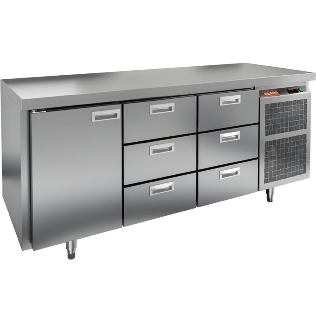 Каталог оборудования Холодильное оборудованиеСтолы охлаждаемыеСтолы морозильные низкотемпературныеСтол морозильный HiCold GN 133/BT O Стол морозильный HiCold GN 133/BT O Код товара: 065-067 Поделиться: WhatsAppTelegram СравнитьДобавить в КПВ избранное 0 266 752 ₽ В корзину 0 шт Под заказСамовывоз сегодня бесплатно Взять в кредит Купить в лизинг Получить консультацию в WhatsApp Описание Характеристики Отзывы 0 Инструкции 2 Стол морозильный HiCold GN133/BT О сочетает в себе удобную рабочую поверхность и вместительную морозильную камеру. Верхняя часть используется для раскатки теста и подготовки ингредиентов, а внутренняя камера предназначена для заморозки и хранения продуктов и полуфабрикатов. Стол оснащен одной глухой дверяью и шестью выдвижными ящиками, что обеспечивает удобный доступ к продуктам и рациональное использование внутреннего пространства. Оборудование идеально подходит для предприятий общественного питания. Особенности: Совместимость с GN-стандартом — полки, направляющие и стойки полностью интегрируются с профессиональным кухонным оборудованием. Прочный цельнозаливной корпус из нержавеющей стали с 50 мм изоляцией обеспечивает высокую герметичность и жесткость конструкции. Столешница без борта для удобной работы с крупными и длинными заготовками. Электронный блок управления с повышенной надежностью и несколькими режимами оттаивания. Вентилятор увеличенной мощности и принудительная вентиляция по всему объему камеры для равномерного и быстрого охлаждения. Интеллектуальная система размораживания и термическое выпаривание конденсата снижают затраты на обслуживание. Экономичный компрессор нового поколения снижает энергопотребление. Облегченный доступ к агрегату упрощает сервисное обслуживание. Двери с доводчиками и ПЭН предотвращают примерзание и обеспечивают плотное закрытие. Регулируемые по высоте ножки для устойчивости на разных поверхностях. Максимальная нагрузка на полку — 50 кг. Высота борта рабочей поверхности — 50 мм. Температура окружающей среды: 12–32 °C. HiCold GN133/BT О — это надежный и функциональный морозильный стол, обеспечивающий удобство работы и эффективное хранение продуктов. Он идеально подходит для интенсивной эксплуатации на профессиональных кухнях ресторанов, кафе и предприятий общественного питания.Изображение товара, представленного на фото, может отличаться от его фактического вида. Показать все Габаритные размеры1835×700×850 ммДиапазон рабочей температурыот -18 до -10 °CРасположение агрегатаБоковое Материал столешницыНержавеющая Тип столаС дверьми и ящиками Тип двериГлухая Объём505 лКоличество дверей1 штКоличество полок1 штКоличество ящиков6 штНапряжение220 ВМощность0,6 кВтТип охлажденияДинамический Тип оттайкиАвтоматическая СтолешницаБзе борта Габариты в упаковке200×845×995 ммВес нетто128 кгВес брутто148 кгБрендHicoldВсе морозильные столы HicoldВсе морозильные столы без бортаВсе морозильные столы с бортом Оставить отзыв Еще никто не оставил отзыв на этот товар Паспорт на HICOLD GN133/BT О.pdfДекларация о соответствии.pdf Похожие товары Перейти в каталог Под заказ 166 404 ₽ Стол морозильный Abat СХН-70-02 без борта (дверь, дверь, дверь) Под заказ 156 861 ₽ Стол морозильный HiCold GN 111/BT W С этим товаром покупают Под заказ 176 862 ₽ Шкаф холодильный Abat ШХ-1,4 Ранее просмотрено Под заказ 1 034 929 ₽ Сплит-система холодильная низкотемпературная Севе