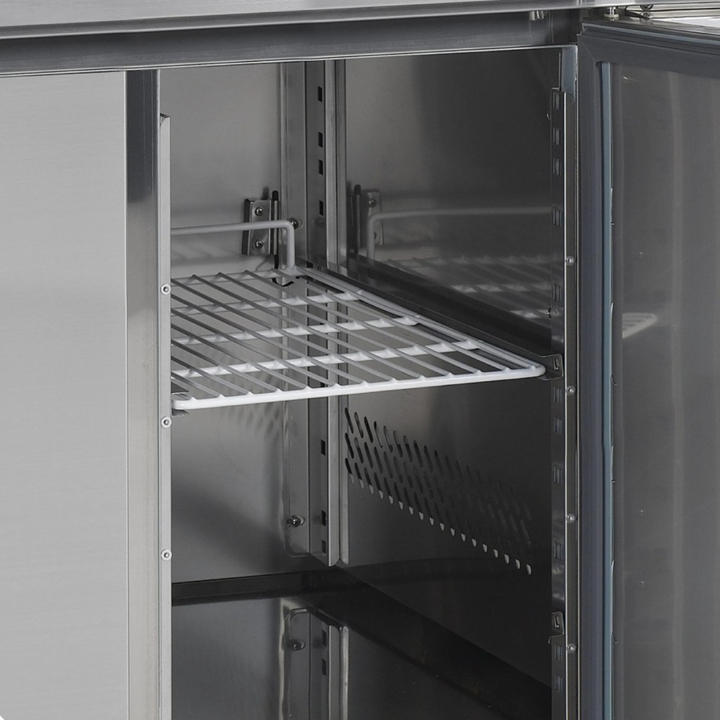 Каталог оборудования Холодильное оборудованиеСтолы охлаждаемыеСтолы морозильные низкотемпературныеСтол морозильный TEFCOLD CF7310 Стол морозильный TEFCOLD CF7310 Код товара: 010-257 Поделиться: WhatsAppTelegram СравнитьДобавить в КПВ избранное 0 218 857 ₽ В корзину 0 шт В наличииСамовывоз сегодня бесплатно Взять в кредит Купить в лизинг Получить консультацию в WhatsApp Описание Характеристики Отзывы 0 Стол морозильный TEFCOLD CF7310 — профессиональное оборудование для раскатки теста, обработки, заморозки и долговременного хранения продуктов, полуфабрикатов, напитков и мороженого на предприятиях общественного питания и торговли. Корпус и внутренняя отделка выполнены из нержавеющей стали AISI 304, что обеспечивает долговечность, гигиеничность и лёгкость ухода. Особенности модели: Динамическое охлаждение — равномерное распределение холода по всему объёму Автоматическое размораживание — поддержание стабильной работы без образования наледи Электронный термостат и градусник — точное управление температурой Хладагент R404a, подзарядка — 0,09 кг Съёмная столешница с бортом — удобство работы и уборки Самозакрывающиеся двери 3 полки GN1/1 (530 × 325 мм) — эффективная организация внутреннего пространства Регулируемые по высоте ножки — устойчивость на любой поверхности Климатический класс 4 — работа при температуре до +30 °C Полезный объём: 402 л Мощность: 0,7 кВт Энергопотребление: 10,15 кВт/сутки Внутренние размеры: 1337 × 530 × 589 мм Уровень шума: 42 дБ TEFCOLD CF7310 — надёжный и функциональный морозильный стол для профессиональных кухонь. Он сочетает рабочую поверхность для раскатки теста с вместительной морозильной камерой, обеспечивая удобство работы, долговременное хранение продуктов и стабильный температурный режим.Изображение товара, представленного на фото, может отличаться от его фактического вида. Показать все Габаритные размеры1795×700×980 ммДиапазон рабочей температурыот -20 до -10 °CРасположение агрегатаБоковое Материал столешницыНержавеющая Тип столаС дверьми Тип двериГлухая Общий объем417 лПолезный объем402 лКоличество дверей3 штРазмер полки530×325 ммНапряжение230 ВРасход электроэнергии в сутки6,95 кВт/сутТип охлажденияДинамический Тип оттайкиАвтоматическая Климатический класс4 ХладагентR404a СтолешницаС бортом Уровень шума42 дБГабариты в упаковке1830×750×1010 ммВес нетто152 кгВес брутто162 кгБрендTefcold Оставить отзыв Еще никто не оставил отзыв на этот товар Похожие товары Перейти в каталог Под заказ 125 817 ₽ Стол морозильный HURAKAN HKN-GN3BT Под заказ 166 404 ₽ Стол морозильный Abat СХН-70-02 без борта (дверь, дверь, дверь) С этим товаром покупают В наличии 201 690 ₽ Шкаф морозильный Полюс Carboma F1400 Ранее просмотрено Под заказ 123 310 ₽ Шкаф холодильный Ангара 1500 М