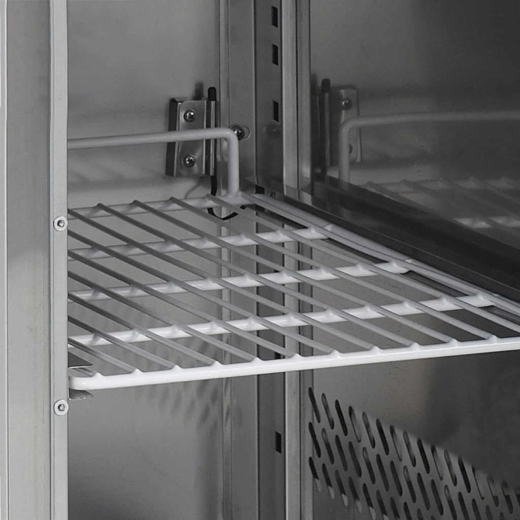 Каталог оборудования Холодильное оборудованиеСтолы охлаждаемыеСтолы морозильные низкотемпературныеСтол морозильный TEFCOLD SA910BT Стол морозильный TEFCOLD SA910BT Код товара: 010-255 Поделиться: WhatsAppTelegram СравнитьДобавить в КПВ избранное 0 116 316 ₽ В корзину 0 шт Под заказСамовывоз сегодня бесплатно Взять в кредит Купить в лизинг Получить консультацию в WhatsApp Описание Характеристики Отзывы 0 Инструкции 1 Стол морозильный TEFCOLD SA910BT — профессиональное оборудование для раскатки теста, обработки, заморозки и долговременного хранения продуктов, полуфабрикатов, напитков и мороженого на предприятиях общественного питания и торговли. Корпус и внутренняя отделка выполнены из нержавеющей стали AISI 304, что обеспечивает долговечность, гигиеничность и лёгкость ухода. Особенности модели: Статическое охлаждение — равномерная температура по всему объёму Автоматическое размораживание — поддержание стабильного режима без образования наледи Электронный термостат и градусник — точный контроль температуры Хладагент R134a, подзарядка — 0,165 кг 2 полки для удобной организации внутреннего пространства Регулируемые по высоте ножки — устойчивость на любой поверхности Климатический класс 4 — работа при температуре до +30 °C Размеры полок: 530 × 325 мм Внутренние размеры: 830 × 515 × 500 мм Потребляемая мощность: 0,338 кВт Энергопотребление: 8,13 кВт/сутки Уровень шума: 42 дБ TEFCOLD SA910BT — надёжный морозильный стол для профессиональных кухонь и предприятий общественного питания. Модель сочетает рабочую поверхность для раскатки теста, эффективное охлаждаемое пространство и долговременное хранение продуктов, обеспечивая удобство работы и сохранность ингредиентов.Изображение товара, представленного на фото, может отличаться от его фактического вида. Показать все Габаритные размеры943×700×877 ммДиапазон рабочей температурыот -20 до -10 °CРасположение агрегатаНижнее Материал столешницыНержавеющая Тип столаС дверьми Тип двериГлухая Общий объем260 лПолезный объем230 лКоличество дверей2 штНапряжение230 ВРасход электроэнергии в сутки6,95 кВт/сутТип охлажденияСтатическое Тип оттайкиАвтоматическая Климатический класс4 ХладагентR134а СтолешницаБез борта Габариты в упаковке980×770×1040 ммВес нетто86 кгВес брутто96 кгБрендTefcold Оставить отзыв Еще никто не оставил отзыв на этот товар Инструкция на TEFCOLD SA910BT.pdf Похожие товары Перейти в каталог Под заказ 132 741 ₽ Стол морозильный Abat СХН-60-01 с бортом (дверь, дверь) В наличии 79 865 ₽ Стол морозильный Cooleq SS45BT Под заказ 108 783 ₽ Стол морозильный HURAKAN HKN-GN2BT Под заказ 132 842 ₽ Стол морозильный Abat СХН-60-01 без борта (дверь, дверь) С этим товаром покупают Под заказ 109 950 ₽ Шкаф холодильный HURAKAN HKN-GX650TN Под заказ 140 250 ₽ Жарочная поверхность Аbat ГАКО-80/2Н-Ч-00 В наличии 60 020 ₽ Индукционная плита HURAKAN HKN-ICF35DX47 Ранее просмотрено Под заказ 214 356 ₽ Камера холодильная Polair КХН-10,28 (2300×2600×2240) 100 мм Под заказ 152 256 ₽ Бонета морозильная МХМ Рица ВХНо-2,5/1,0 В наличии 8 300 ₽ Рисоварка HURAKAN HKN-SDR230 Под заказ 120 400 ₽ Витрина кондитерская Полюс Carboma ВХСв-0,9д Техно Под заказ 268 381 ₽ Компрессорно-конденсаторный блок Север ACM-ZB21 Под заказ 720 645 ₽ Горка холодильная МХМ Барселона 210/98 ВХНп-3,9
