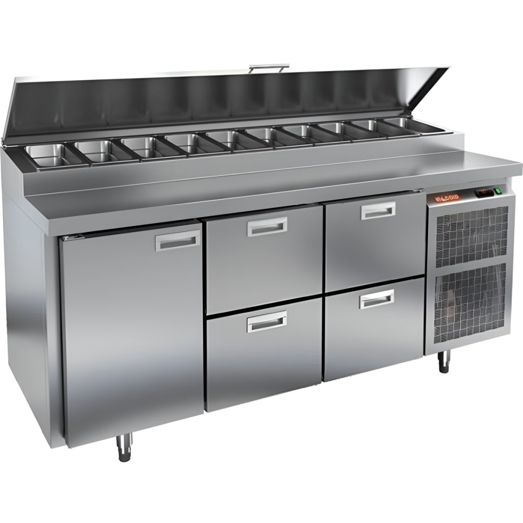 Каталог оборудования Холодильное оборудованиеСтолы охлаждаемыеСтолы холодильные для пиццыСтол холодильный для пиццы HiCold PZ1-122N (1/3) Стол холодильный для пиццы HiCold PZ1-122N (1/3) Код товара: 064-709 Поделиться: WhatsAppTelegram СравнитьДобавить в КПВ избранное 0 275 572 ₽ В корзину 0 шт Под заказСамовывоз сегодня бесплатно Взять в кредит Купить в лизинг Получить консультацию в WhatsApp Описание Характеристики Отзывы 0 Стол холодильный для пиццы HiCold PZ1-122GN (1/3) — профессиональное оборудование для предприятий общественного питания и торговли. Он сочетает рабочую поверхность для раскатки теста и подготовки ингредиентов с охлаждаемым блоком для кратковременного хранения скоропортящихся продуктов и напитков. Такое решение обеспечивает максимальное удобство — все необходимые компоненты всегда находятся под рукой. Корпус и столешница выполнены из нержавеющей стали, что гарантирует долговечность, устойчивость к повреждениям и лёгкость ухода. Основные особенности: Нержавеющая столешница и корпус — прочность, гигиеничность и лёгкость очистки Динамическая система охлаждения — равномерное распределение холода Автоматическая оттайка — стабильная работа без образования наледи Электронная панель управления — точная настройка температуры 1 дверца и 4 выдвижных ящика — удобная организация внутреннего пространства Автоматические доводчики дверцы и ящиков — комфорт при работе Легкозаменяемые магнитные уплотнители — поддержание герметичности Открытая агрегатная часть — лёгкий доступ для обслуживания Регулируемые по высоте ножки — установка на неровных поверхностях Максимальная глубина гастроёмкостей: 100 мм Глубина рабочей поверхности: 324 мм Толщина столешницы и теплоизоляции: 50 мм Вместимость салат-бара: до 10 гастроёмкостей Стол холодильный HiCold PZ1-122GN (1/3) — надёжный и функциональный холодильный стол для пиццы и салатов. Продуманная организация хранения и удобство эксплуатации обеспечивают быстрый доступ к ингредиентам и высокую производительность на профессиональной кухне.Изображение товара, представленного на фото, может отличаться от его фактического вида. Показать все Габаритные размеры1835×700×1000 ммДиапазон рабочей температурыот +2 до +10 °CРасположение агрегатаБоковое Материал столешницыНержавеющая Тип столаС дверьми и ящиками Тип двериГлухая Объём505 лТип гастроемкостейGN 1/3 Количество дверей1 штКоличество ящиков4 штРазмер полки530×325 ммНапряжение220 ВМощность0,5 кВтТип охлажденияДинамическое Тип оттайкиАвтоматическая Габариты в упаковке2000×850×1140 ммВес нетто172 кгВес брутто200 кгБрендHicoldВсе холодильные столы для пиццы HicoldВсе нержавеющие холодильные столы для пиццы Оставить отзыв Еще никто не оставил отзыв на этот товар Ранее просмотрено Под заказ 311 842 ₽ Стол холодильный для пиццы HiCold PZ1-1122/GN (1/3H) Под заказ 260 272 ₽ Стол холодильный для пиццы HiCold PZ1-113GN (1/3H)