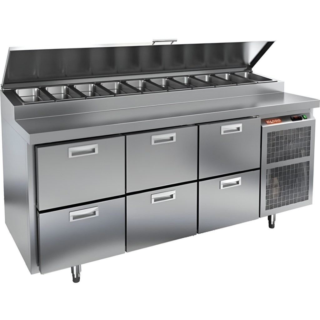 Каталог оборудования Холодильное оборудованиеСтолы охлаждаемыеСтолы холодильные для пиццыСтол холодильный для пиццы HiCold PZ1-222GN (1/3H) Стол холодильный для пиццы HiCold PZ1-222GN (1/3H) Код товара: 064-710 Поделиться: WhatsAppTelegram СравнитьДобавить в КПВ избранное 0 306 172 ₽ В корзину 0 шт Под заказСамовывоз сегодня бесплатно Взять в кредит Купить в лизинг Получить консультацию в WhatsApp Описание Характеристики Отзывы 0 Стол холодильный для пиццы HiCold PZ1-222GN (1/3H) — профессиональное оборудование для предприятий общественного питания и торговли. Он сочетает рабочую поверхность для раскатки теста и подготовки ингредиентов с охлаждаемым блоком для кратковременного хранения скоропортящихся продуктов и напитков. Такое решение обеспечивает максимальное удобство — все необходимые компоненты всегда находятся под рукой. Корпус и столешница выполнены из нержавеющей стали, что гарантирует долговечность, устойчивость к повреждениям и лёгкость ухода. Основные особенности: Нержавеющая столешница и корпус — прочность, гигиеничность и лёгкость очистки Динамическая система охлаждения — равномерное распределение холода Автоматическая оттайка — стабильная работа без образования наледи Электронная панель управления — точная настройка температуры 6 выдвижных ящиков — удобная организация внутреннего пространства без дверцы Автоматические доводчики ящиков — комфорт при работе Легкозаменяемые магнитные уплотнители — поддержание герметичности Открытая агрегатная часть — лёгкий доступ для обслуживания Регулируемые по высоте ножки — установка на неровных поверхностях Максимальная глубина гастроёмкостей: 100 мм Глубина рабочей поверхности: 324 мм Толщина столешницы и теплоизоляции: 50 мм Вместимость салат-бара: до 10 гастроёмкостей Стол холодильный HiCold PZ1-222GN (1/3H) — надёжный и функциональный холодильный стол для пиццы и салатов. Полное отсутствие дверцы и продуманная система хранения обеспечивают быстрый доступ к ингредиентам, удобство эксплуатации и высокую производительность на профессиональной кухне.Изображение товара, представленного на фото, может отличаться от его фактического вида. Показать все Габаритные размеры1835×700×1000 ммДиапазон рабочей температурыот +2 до +10 °CРасположение агрегатаБоковое Материал столешницыНержавеющая Тип столаС ящиками Объём505 лТип гастроемкостейGN 1/3 Количество ящиков6 штНапряжение220 ВМощность0,5 кВтТип охлажденияДинамическое Тип оттайкиАвтоматическая Габариты в упаковке2000×850×1140 ммВес нетто172 кгВес брутто200 кгБрендHicoldВсе холодильные столы для пиццы HicoldВсе нержавеющие холодильные столы для пиццы Оставить отзыв Еще никто не оставил отзыв на этот товар Ранее просмотрено Под заказ 282 142 ₽ Стол холодильный для пиццы HiCold PZE3-112/GN камень Под заказ 269 092 ₽ Стол холодильный для пиццы HiCold PZ2-22GN (1/6) камень Под заказ 330 022 ₽ Стол холодильный для пиццы HiCold PZ3-1113/GN камень