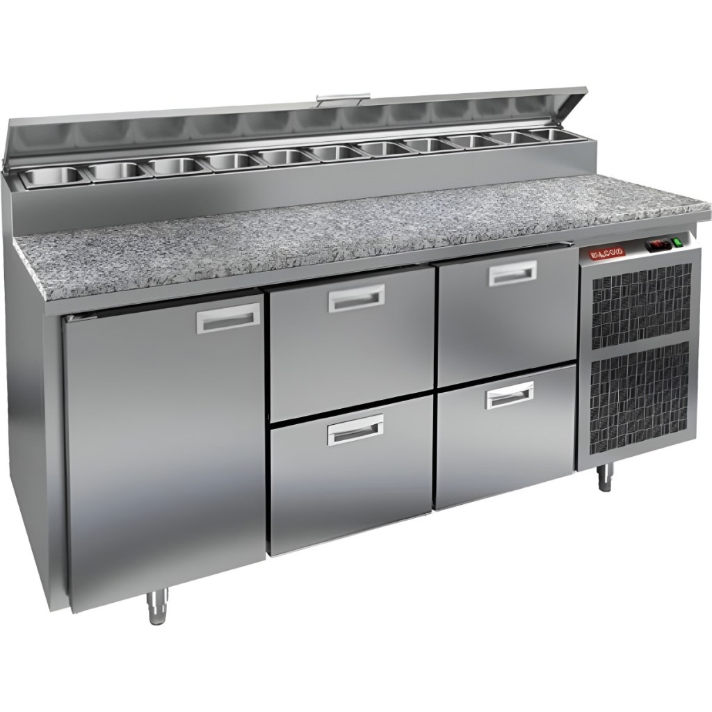 Каталог оборудования Холодильное оборудованиеСтолы охлаждаемыеСтолы холодильные для пиццыСтол холодильный для пиццы HiCold PZ2-122GN (1/6) камень Стол холодильный для пиццы HiCold PZ2-122GN (1/6) камень Код товара: 064-757 Поделиться: WhatsAppTelegram СравнитьДобавить в КПВ избранное 0 308 062 ₽ В корзину 0 шт Под заказСамовывоз сегодня бесплатно Взять в кредит Купить в лизинг Получить консультацию в WhatsApp Описание Характеристики Отзывы 0 Стол холодильный для пиццы HiCold PZ2-122GN (1/6) камень предназначен для кухонь и предприятий общественного питания. Он используется для раскатки теста, подготовки ингредиентов для пиццы, салатов и других блюд, а также для охлаждения и кратковременного хранения скоропортящихся продуктов. Модель совмещает гранитную рабочую поверхность и охлаждаемый отсек с 1 дверью и 4 ящиками, обеспечивая удобный доступ к ингредиентам и эффективное хранение. Особенности: Динамическая система охлаждения для равномерного поддержания температуры Автоматическая оттайка для удобного обслуживания Электронная панель управления для точной настройки параметров Вместительная внутренняя полка формата GN 1/1 (размер 530×325 мм) 1 дверь и 4 вместительных ящика для хранения ингредиентов Автоматические доводчики дверей с фиксатором открытого положения Легкозаменяемые магнитные уплотнители для герметичности Открытая агрегатная часть для легкого доступа к компонентам Регулируемые по высоте ножки для устойчивости Гранитная рабочая поверхность глубиной 486 мм и толщиной 50 мм — устойчива к повреждениям, высоким температурам и царапинам Толщина теплоизоляции: 50 мм Максимальная глубина гастроемкостей: 100 мм Вместимость салат-бара: 11 гастроемкости Стол холодильный HiCold PZ2-122GN (1/6) камень — это надёжный и функциональный стол для пиццы. Он сочетает рабочую поверхность и охлаждаемый отсек, облегчает хранение и подготовку ингредиентов, повышает удобство работы повара и соответствует стандартам профессиональной кухни.Изображение товара, представленного на фото, может отличаться от его фактического вида. Показать все Габаритные размеры1835×700×1000 ммДиапазон рабочей температурыот +2 до +10 °CРасположение агрегатаБоковое Материал столешницыГранитная Тип столаС дверьми и ящиками Тип двериГлухая Объём350 лТип гастроемкостейGN 1/6 Количество дверей1 штКоличество ящиков4 штРазмер полки530×325 ммНапряжение220 ВМощность0,5 кВтТип охлажденияДинамическое Тип оттайкиАвтоматическая Габариты в упаковке2000×850×1140 ммВес нетто172 кгВес брутто248 кгБрендHicoldВсе холодильные столы для пиццы Hicold Оставить отзыв Еще никто не оставил отзыв на этот товар Ранее просмотрено Под заказ 330 022 ₽ Стол холодильный для пиццы HiCold PZ3-1113/GN камень