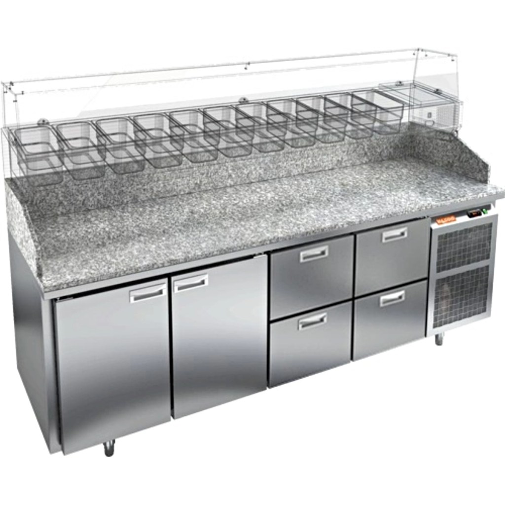 Каталог оборудования Холодильное оборудованиеСтолы охлаждаемыеСтолы холодильные для пиццыСтол холодильный для пиццы HiCold PZ3-1122/GN камень Стол холодильный для пиццы HiCold PZ3-1122/GN камень Код товара: 065-014 Поделиться: WhatsAppTelegram СравнитьДобавить в КПВ избранное 0 345 322 ₽ В корзину 0 шт Под заказСамовывоз сегодня бесплатно Взять в кредит Купить в лизинг Получить консультацию в WhatsApp Описание Характеристики Отзывы 0 Стол холодильный для пиццы HiCold PZE3-221/GN камень предназначен для использования в пиццериях, кафе, магазинах и ресторанах. Он идеально подходит для раскатки теста, подготовки ингредиентов и кратковременного хранения скоропортящихся продуктов. Витрина приобретается отдельно. Стол сочетает корпус из нержавеющей стали и гранитную столешницу, которая устойчива к механическим и температурным нагрузкам и удобна в работе с тестом. Такая конструкция обеспечивает долговечность, гигиеничность и простоту ухода. Особенности модели: Охлаждение: динамическое — равномерное поддержание температуры Оттайка: автоматическая — удобство и экономия времени Панель управления: электронная — точная настройка температуры Ножки: регулируемые по высоте — устойчивость на неровной поверхности Двери: 1 глухая дверца с автоматическими доводчиками и фиксатором открытого положения Ящики: 4 выдвижных ящика — удобное хранение ингредиентов Уплотнители: легкозаменяемые магнитные — герметичность и простота обслуживания Толщина теплоизоляции: 50 мм — сохранение холода и энергоэффективность Рабочая поверхность: глубина 680 мм — удобство работы HiCold PZE3-221/GN камень— это надёжный и функциональный холодильный стол для пиццы, который сочетает прочность, эргономику и эффективное охлаждение. Благодаря гранитной столешнице, корпусу из нержавеющей стали, двум глухим дверям и двум выдвижным ящикам он станет универсальным решением для профессиональной кухни. Изображение товара, представленного на фото, может отличаться от его фактического вида. Показать все Габаритные размеры2280×700×1050 ммДиапазон рабочей температурыот +2 до +10 °CРасположение агрегатаБоковое Материал столешницыГранитная Тип столаС дверьми и ящиками Тип двериГлухая Объём660 лКоличество дверей2 штКоличество ящиков4 штРазмер полки530×325 ммНапряжение220 ВМощность0,5 кВтТип охлажденияДинамическое Тип оттайкиАвтоматическая Габариты в упаковке2430×850×1140 ммВес нетто270 кгВес брутто320 кгБрендHicoldВсе холодильные столы для пиццы HicoldВсе нержавеющие холодильные столы для пиццы Оставить отзыв Еще никто не оставил отзыв на этот товар Ранее просмотрено Под заказ 282 142 ₽ Стол холодильный для пиццы HiCold PZE3-112/GN камень Под заказ 269 092 ₽ Стол холодильный для пиццы HiCold PZ2-22GN (1/6) камень Под заказ 330 022 ₽ Стол холодильный для пиццы HiCold PZ3-1113/GN камень