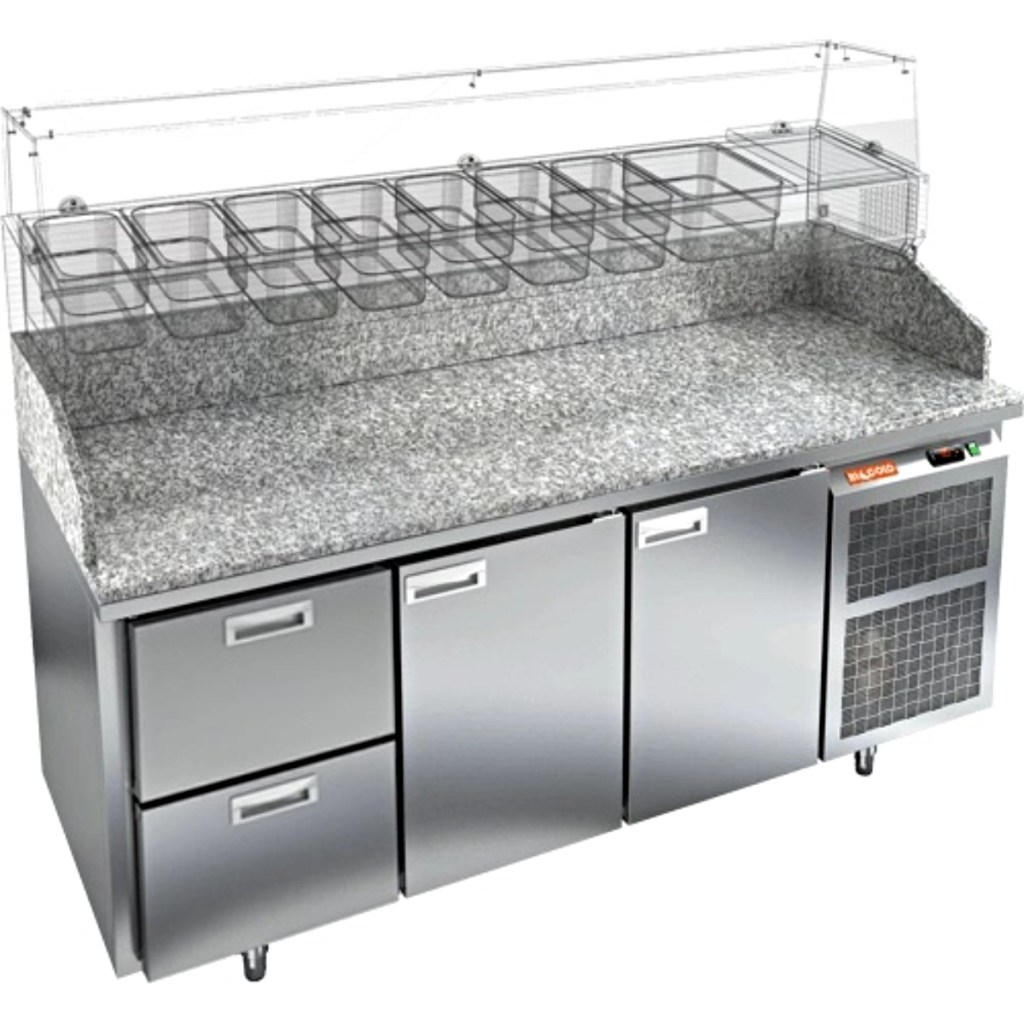 Каталог оборудования Холодильное оборудованиеСтолы охлаждаемыеСтолы холодильные для пиццыСтол холодильный для пиццы HiCold PZ3-211/GN камень Стол холодильный для пиццы HiCold PZ3-211/GN камень Код товара: 065-010 Поделиться: WhatsAppTelegram СравнитьДобавить в КПВ избранное 0 297 352 ₽ В корзину 0 шт Под заказСамовывоз сегодня бесплатно Взять в кредит Купить в лизинг Получить консультацию в WhatsApp Описание Характеристики Отзывы 0 Стол холодильный для пиццы HiCold PZE3-211/GN камень предназначен для использования в пиццериях, кафе, магазинах и ресторанах. Он идеально подходит для раскатки теста, подготовки ингредиентов и кратковременного хранения скоропортящихся продуктов. Витрина приобретается отдельно. Стол сочетает корпус из нержавеющей стали и гранитную столешницу, которая устойчива к механическим и температурным нагрузкам и удобна в работе с тестом. Такая конструкция обеспечивает долговечность, гигиеничность и простоту ухода. Особенности модели: Охлаждение: динамическое — равномерное поддержание температуры Оттайка: автоматическая — удобство и экономия времени Панель управления: электронная — точная настройка температуры Ножки: регулируемые по высоте — устойчивость на неровной поверхности Двери: 2 глухие двери с автоматическими доводчиками и фиксатором открытого положения Ящики: 2 выдвижных ящика — удобное хранение ингредиентов Уплотнители: легкозаменяемые магнитные — герметичность и простота обслуживания Толщина теплоизоляции: 50 мм — сохранение холода и энергоэффективность Рабочая поверхность: глубина 680 мм — удобство работы HiCold PZE3-211/GN камень— это надёжный и функциональный холодильный стол для пиццы, который сочетает прочность, эргономику и эффективное охлаждение. Благодаря гранитной столешнице, корпусу из нержавеющей стали, двум глухим дверям и двум выдвижным ящикам он станет универсальным решением для профессиональной кухни. Изображение товара, представленного на фото, может отличаться от его фактического вида. Показать все Габаритные размеры1835×700×1050 ммДиапазон рабочей температурыот +2 до +10 °CРасположение агрегатаБоковое Материал столешницыГранитная Тип столаС дверьми и ящиками Тип двериГлухая Объём505 лКоличество дверей2 штКоличество ящиков2 штРазмер полки530×325 ммНапряжение220 ВМощность0,5 кВтТип охлажденияДинамическое Тип оттайкиАвтоматическая Габариты в упаковке2000×850×1180 ммВес нетто172 кгВес брутто192 кгБрендHicoldВсе холодильные столы для пиццы HicoldВсе нержавеющие холодильные столы для пиццы Оставить отзыв Еще никто не оставил отзыв на этот товар Ранее просмотрено В наличии 246 862 ₽ Стол холодильный для пиццы HiCold PZ2-111GN (1/6) камень Под заказ 225 712 ₽ Стол холодильный для пиццы HiCold PZ1-111GN (1/3) стекло Под заказ 330 022 ₽ Стол холодильный для пиццы HiCold PZ3-1113/GN камень