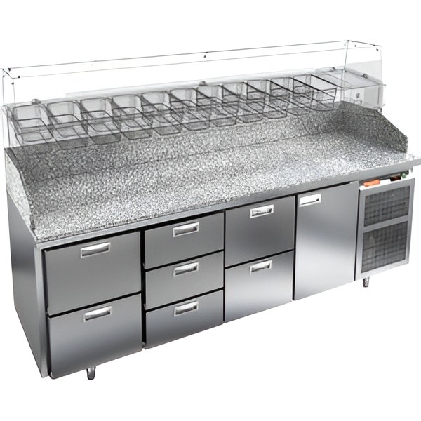 Каталог оборудования Холодильное оборудованиеСтолы охлаждаемыеСтолы холодильные для пиццыСтол холодильный для пиццы HiCold PZ3-2321/GN камень Стол холодильный для пиццы HiCold PZ3-2321/GN камень Код товара: 065-015 Поделиться: WhatsAppTelegram СравнитьДобавить в КПВ избранное 0 391 222 ₽ В корзину 0 шт Под заказСамовывоз сегодня бесплатно Взять в кредит Купить в лизинг Получить консультацию в WhatsApp Описание Характеристики Отзывы 0 Стол холодильный для пиццы HiCold PZ3-2321/GN камень предназначен для использования в пиццериях, кафе, магазинах и ресторанах. Он идеально подходит для раскатки теста, подготовки ингредиентов и кратковременного хранения скоропортящихся продуктов. Витрина приобретается отдельно. Стол сочетает корпус из нержавеющей стали и гранитную столешницу, которая устойчива к механическим и температурным нагрузкам и удобна в работе с тестом. Такая конструкция обеспечивает долговечность, гигиеничность и простоту ухода. Особенности модели: Охлаждение: динамическое — равномерное поддержание температуры Оттайка: автоматическая — удобство и экономия времени Панель управления: электронная — точная настройка температуры Ножки: регулируемые по высоте — устойчивость на неровной поверхности Двери: 1 глухая дверца с автоматическими доводчиками и фиксатором открытого положения Ящики: 7 выдвижных ящика — удобное хранение ингредиентов Уплотнители: легкозаменяемые магнитные — герметичность и простота обслуживания Толщина теплоизоляции: 50 мм — сохранение холода и энергоэффективность Рабочая поверхность: глубина 680 мм — удобство работы HiCold PZ3-2321/GN камень — это надёжный и функциональный холодильный стол для пиццы, который сочетает прочность, эргономику и эффективное охлаждение. Благодаря гранитной столешнице, корпусу из нержавеющей стали, двум глухим дверям и двум выдвижным ящикам он станет универсальным решением для профессиональной кухни. Изображение товара, представленного на фото, может отличаться от его фактического вида. Показать все Габаритные размеры2280×700×1050 ммДиапазон рабочей температурыот +2 до +10 °CРасположение агрегатаБоковое Материал столешницыГранитная Тип столаС дверьми и ящиками Тип двериГлухая Объём660 лКоличество дверей1 штКоличество ящиков7 штРазмер полки530×325 ммНапряжение220 ВМощность0,5 кВтТип охлажденияДинамическое Тип оттайкиАвтоматическая Габариты в упаковке2430×850×1140 ммВес нетто270 кгВес брутто320 кгБрендHicoldВсе холодильные столы для пиццы HicoldВсе нержавеющие холодильные столы для пиццы Оставить отзыв Еще никто не оставил отзыв на этот товар Ранее просмотрено Под заказ 330 022 ₽ Стол холодильный для пиццы HiCold PZ3-1113/GN камень