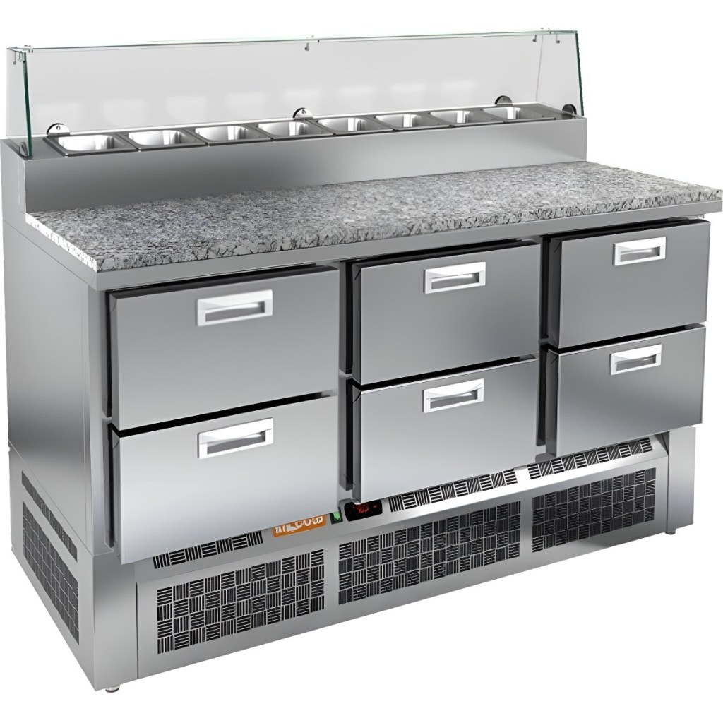 Каталог оборудования Холодильное оборудованиеСтолы охлаждаемыеСтолы холодильные для пиццыСтол холодильный для пиццы HiCold PZE2-222/GN (1/6H) камень со стеклом Стол холодильный для пиццы HiCold PZE2-222/GN (1/6H) камень со стеклом Код товара: 064-966 Поделиться: WhatsAppTelegram СравнитьДобавить в КПВ избранное 0 311 842 ₽ В корзину 0 шт Под заказСамовывоз сегодня бесплатно Взять в кредит Купить в лизинг Получить консультацию в WhatsApp Описание Характеристики Отзывы 0 Стол холодильный для пиццы HiCold PZE2-222/GN (1/6H) камень со стеклом предназначен для использования на предприятиях общественного питания и торговли. Он совмещает охлаждаемый объём и удобную рабочую поверхность, обеспечивая повару быстрый доступ к ингредиентам и комфорт при подготовке блюд — от пиццы и салатов до закусок и десертов. Модель отличается прочной и гигиеничной конструкцией: корпус выполнен из нержавеющей стали, устойчивой к износу и простой в уходе. Столешница из гранита надёжна и долговечна, а стеклянный купол защищает продукты от внешних воздействий и подчёркивает их привлекательный вид. Ключевые особенности: Электронная панель управления – точная регулировка температурного режима 6 выдвижных ящиков — позволяют удобно распределить ингредиенты и оптимально организовать пространство для хранения продуктов Салат-бар на 8 гастроемкостей – удобное размещение и быстрый доступ к ингредиентам Автоматические доводчики дверей с фиксатором открытого положения – комфорт при работе Легкозаменяемые магнитные уплотнители – надёжная герметизация и простота обслуживания Открытая агрегатная часть – лёгкий доступ для технического обслуживания Регулируемые по высоте ножки – устойчивость на разных типах покрытия Максимальная глубина гастроемкостей: 100 мм Глубина рабочей поверхности: 486 мм Толщина столешницы: 50 мм HiCold PZE2-222/GN (1/6H) камень со стеклом — универсальный стол для пиццы, сочетающий вместительное охлаждение и рабочую поверхность из нержавеющей стали. Подходит для ресторанов, кафе и пиццерий, где важно удобство, гигиена и надёжность оборудования.Изображение товара, представленного на фото, может отличаться от его фактического вида. Показать все Габаритные размеры1485×700×990 ммДиапазон рабочей температурыот +2 до +10 °CРасположение агрегатаНижнее Материал столешницыГранитная Тип столаС ящиками Объём375 лТип гастроемкостейGN 1/6 Количество ящиков6 штРазмер полки530×325 ммНапряжение220 ВМощность0,2 кВтТип охлажденияДинамическое Тип оттайкиАвтоматическая СтолешницаСо стеклянным куполом Габариты в упаковке1700×850×1180 ммВес нетто123 кгВес брутто175 кгБрендHicold Оставить отзыв Еще никто не оставил отзыв на этот товар Ранее просмотрено В наличии 32 569 ₽ Ларь морозильный с прямым стеклом Frostor F 180 C серый