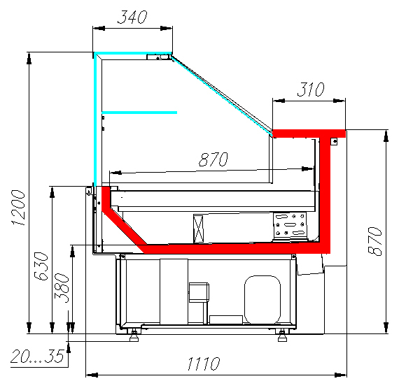 • Глубина зоны выкладки: 870 мм.