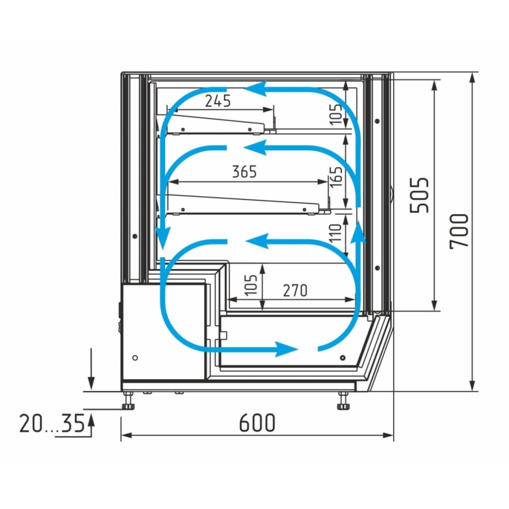 Модель оснащена закалёнными боковыми стеклопакетами, раздвижными фронтальными и задними дверцами, а также двумя охлаждаемыми полками-решётками с ограничителями. Может устанавливаться на столешницу или встраиваться в барную стойку. Корпус выполнен из стали с ППУ-теплоизоляцией, а рабочая поверхность — из нержавеющей стали.
